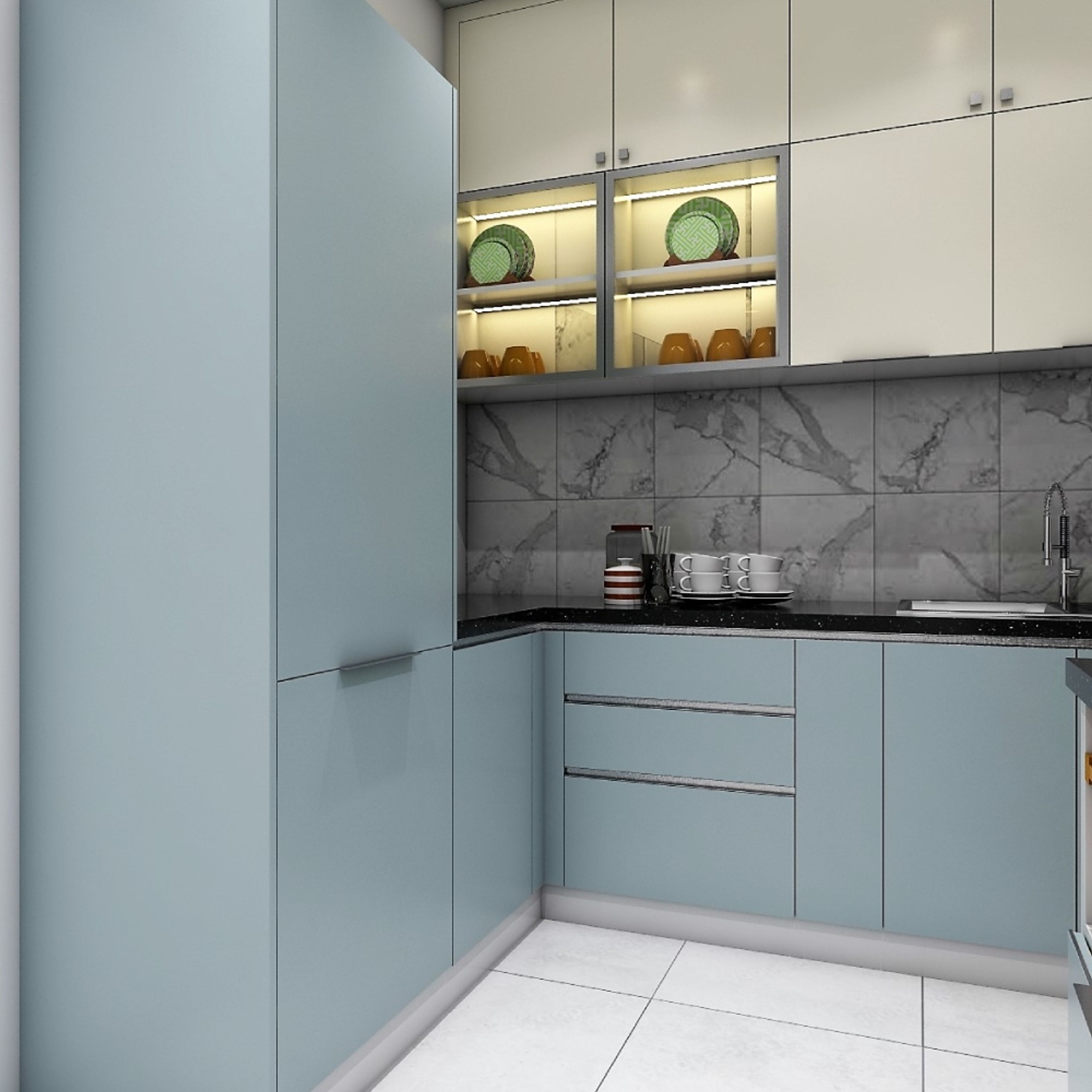 The cost of a modular kitchen in India starts from ₹2 Lakh* in 2025, depending on the materials, finishes, and storage features used. Kitchens are available for all budgets with EMIs as low as ₹3,300/month. Premium options like PU or acrylic finishes, designer patterned backsplashes, and soft-close pull-out units can increase the total cost. You can use the Livspace Kitchen Cost Calculator for an exact estimate.