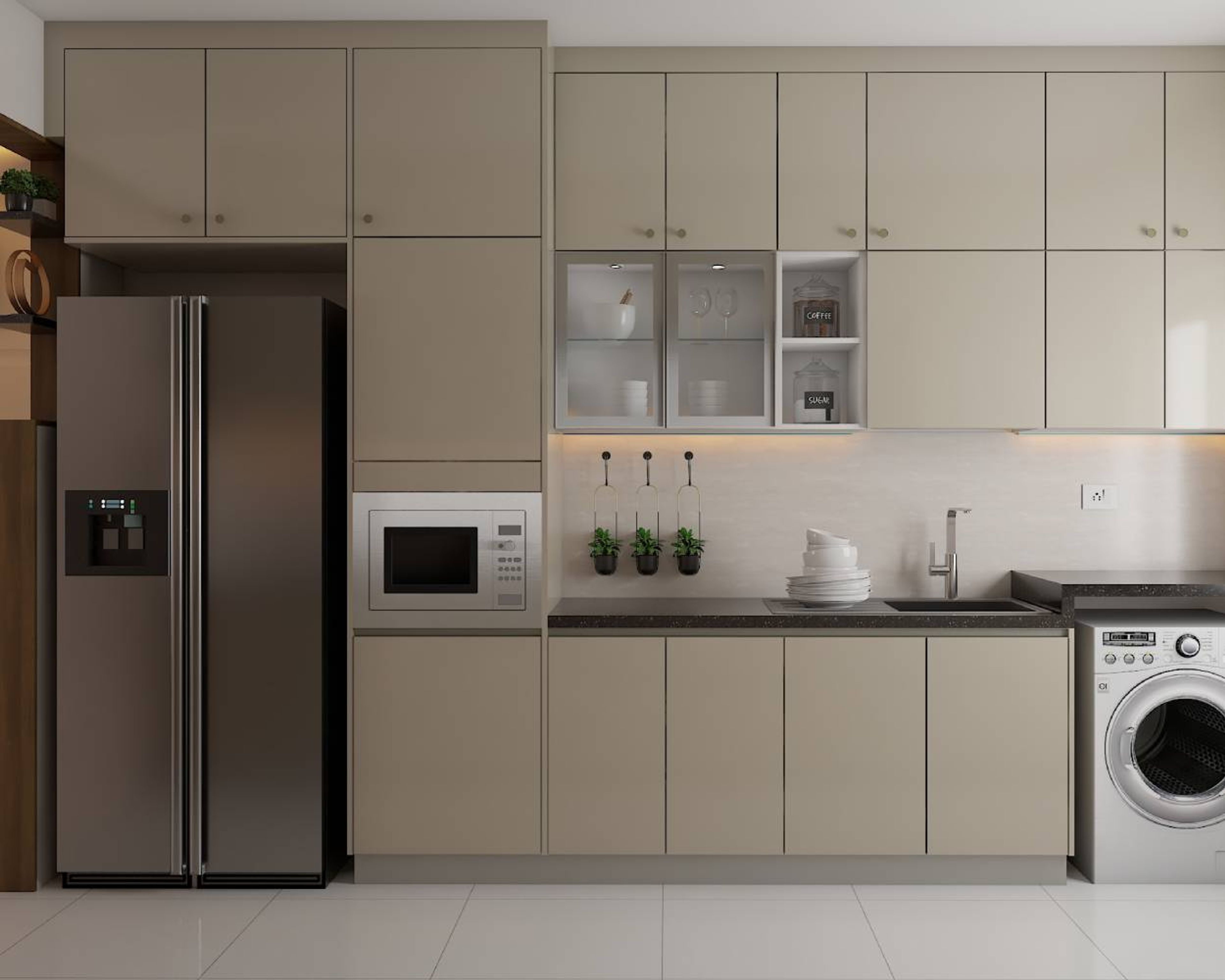 - The handleless design, deep drawers, and well-organized compartments offer seamless functionality and a clutter-free space.