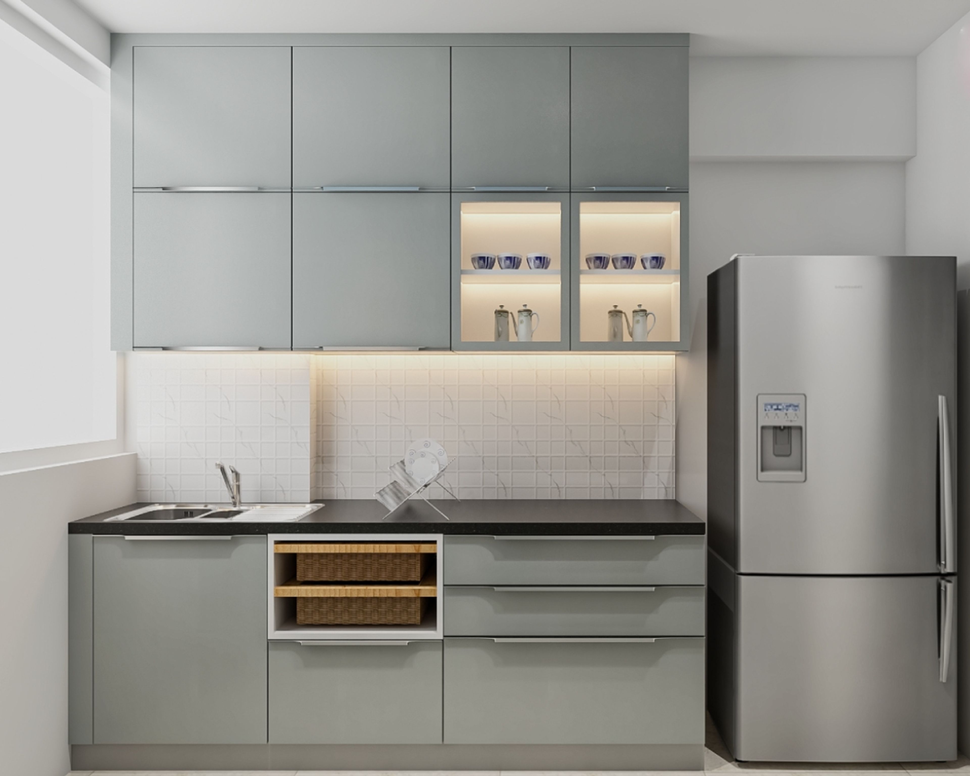 - Sleek aluminium handles for easy pull out of cabinets.