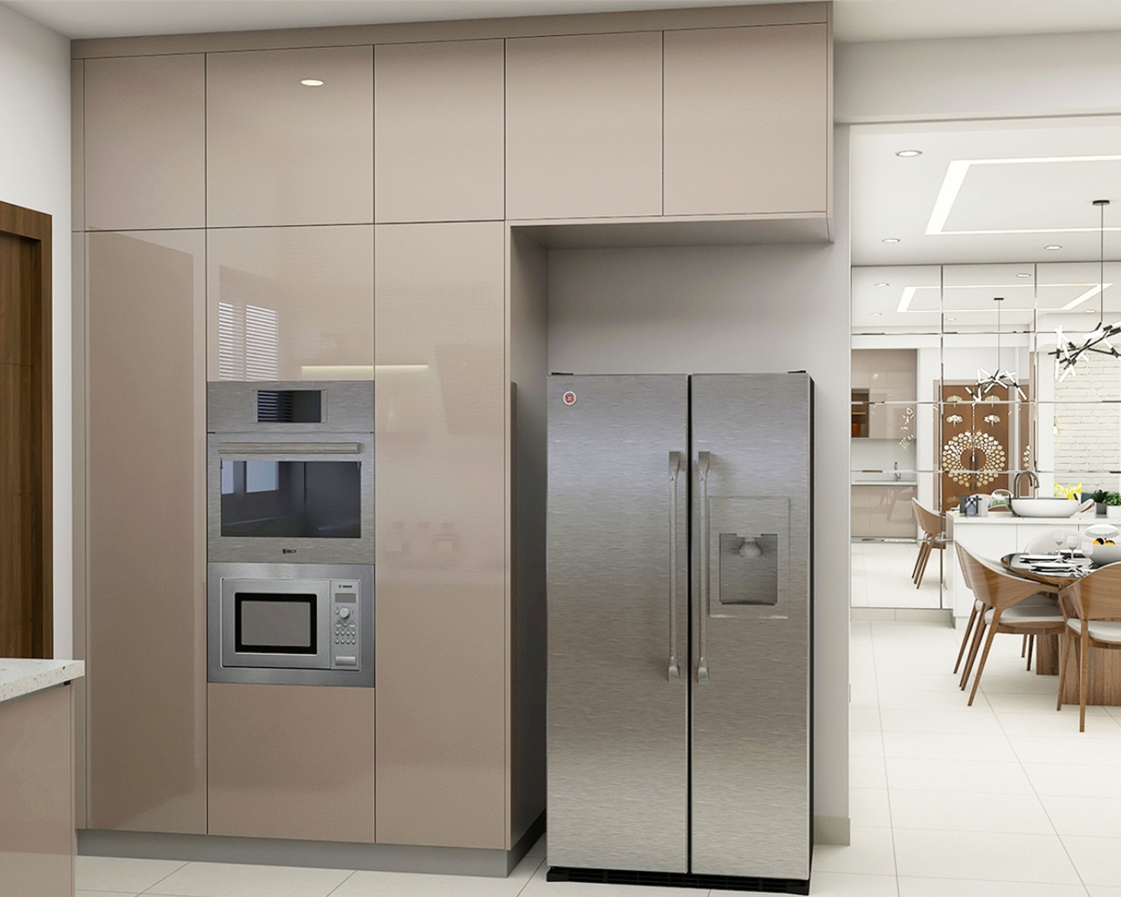 The cost of a modular kitchen in India starts from ₹2 Lakh* in 2025, depending on the materials, finishes, and storage features used. Kitchens are available for all budgets with EMIs as low as ₹3,300/month. Premium options like PU or acrylic finishes, designer patterned backsplashes, and soft-close pull-out units can increase the total cost. You can use the Livspace Kitchen Cost Calculator for an exact estimate.