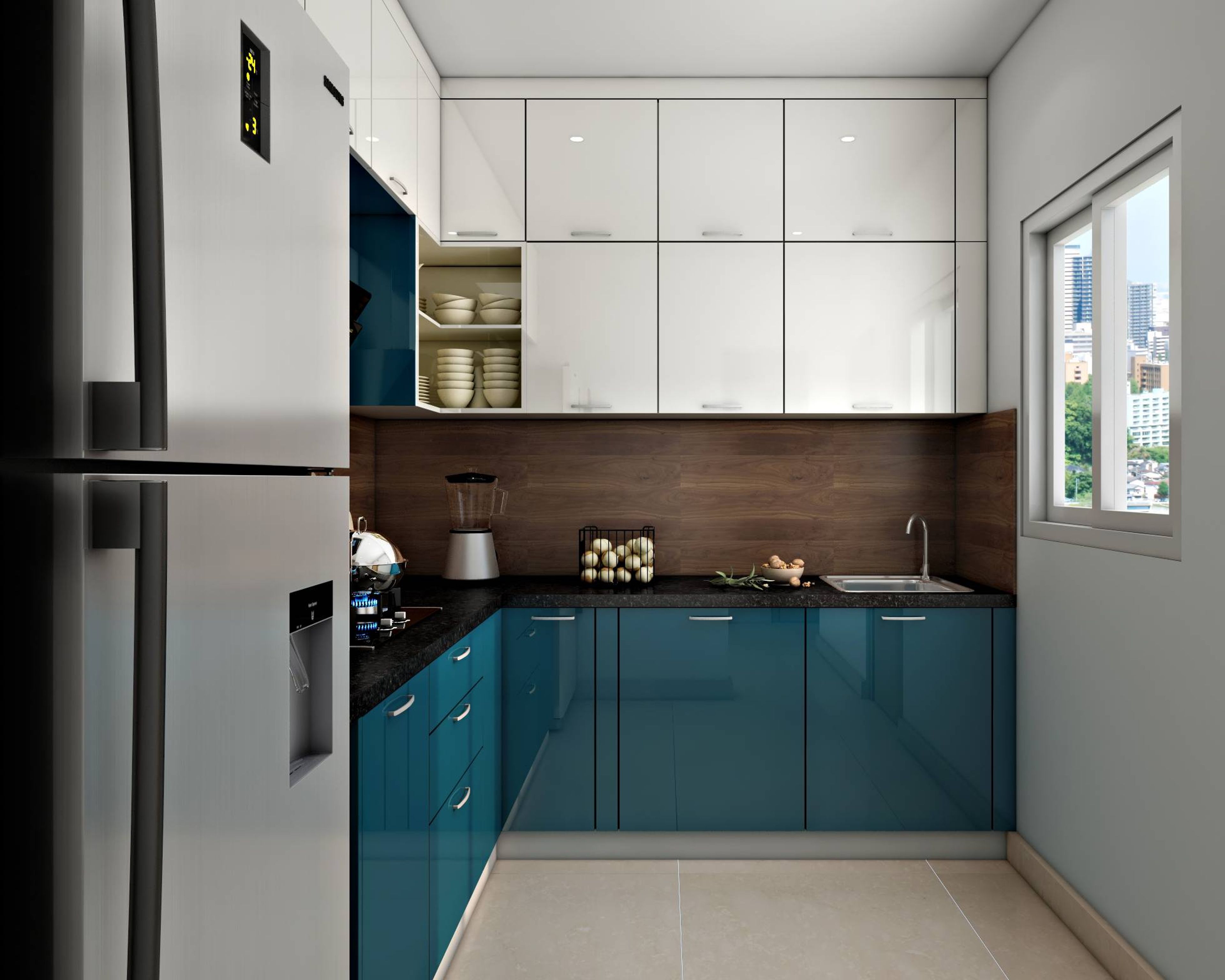 Livspace offers up to 10 years of warranty on Modern L-Shaped Kitchen Design In Pastel Blue And White, covering manufacturing defects, hardware durability, and installation quality. Warranty coverage may vary based on chosen materials and finishes, ensuring long-term peace of mind.