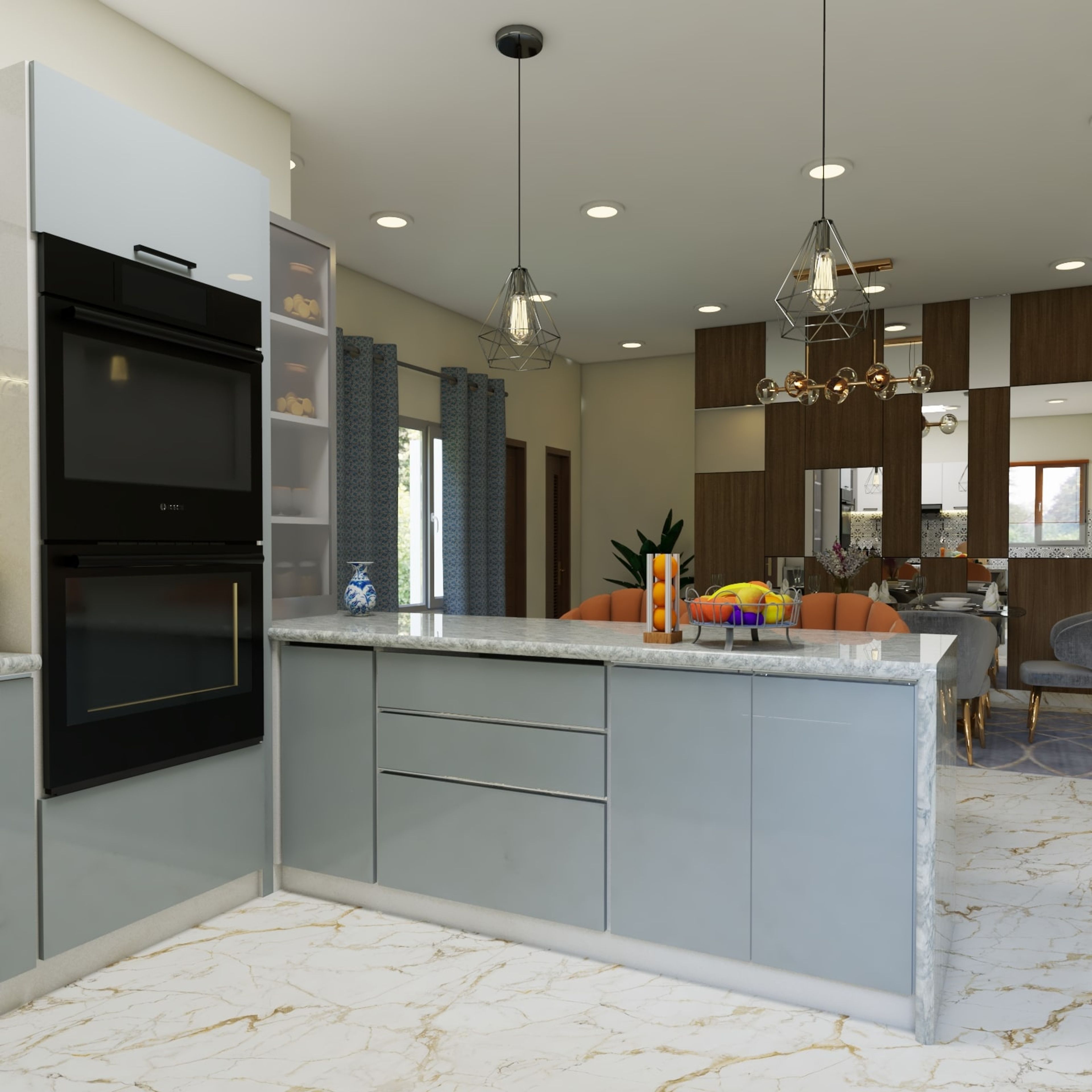 Livspace offers up to 10 years of warranty on Modern Modular Kitchen Design With Kitchen Island, covering manufacturing defects, hardware durability, and installation quality. Warranty coverage may vary based on chosen materials and finishes, ensuring long-term peace of mind.
