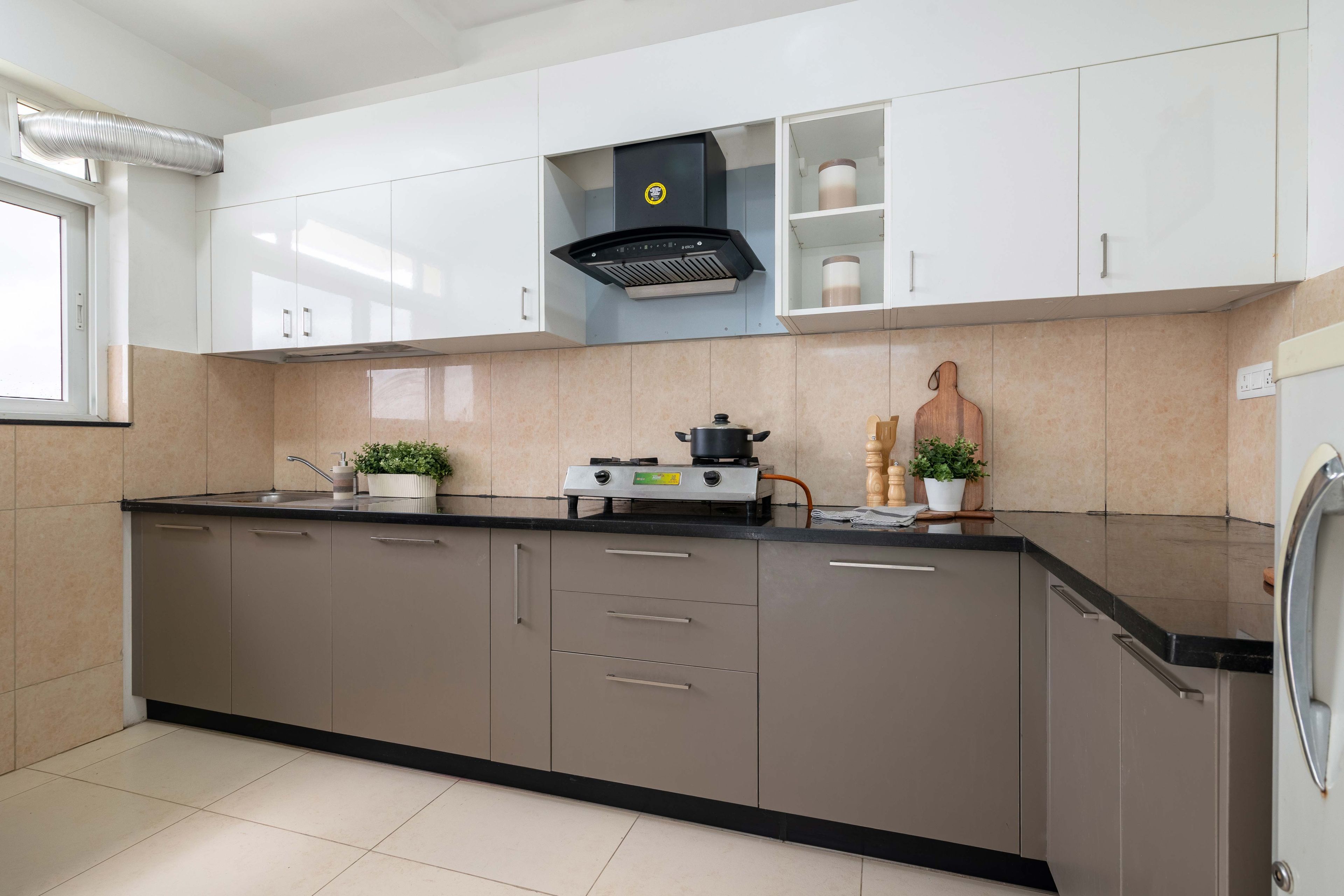 Livspace offers up to 10 years of warranty on Modern Modular L-Shaped Kitchen Cabinet Design With A Black Countertop, covering manufacturing defects, hardware durability, and installation quality. Warranty coverage may vary based on chosen materials and finishes, ensuring long-term peace of mind.