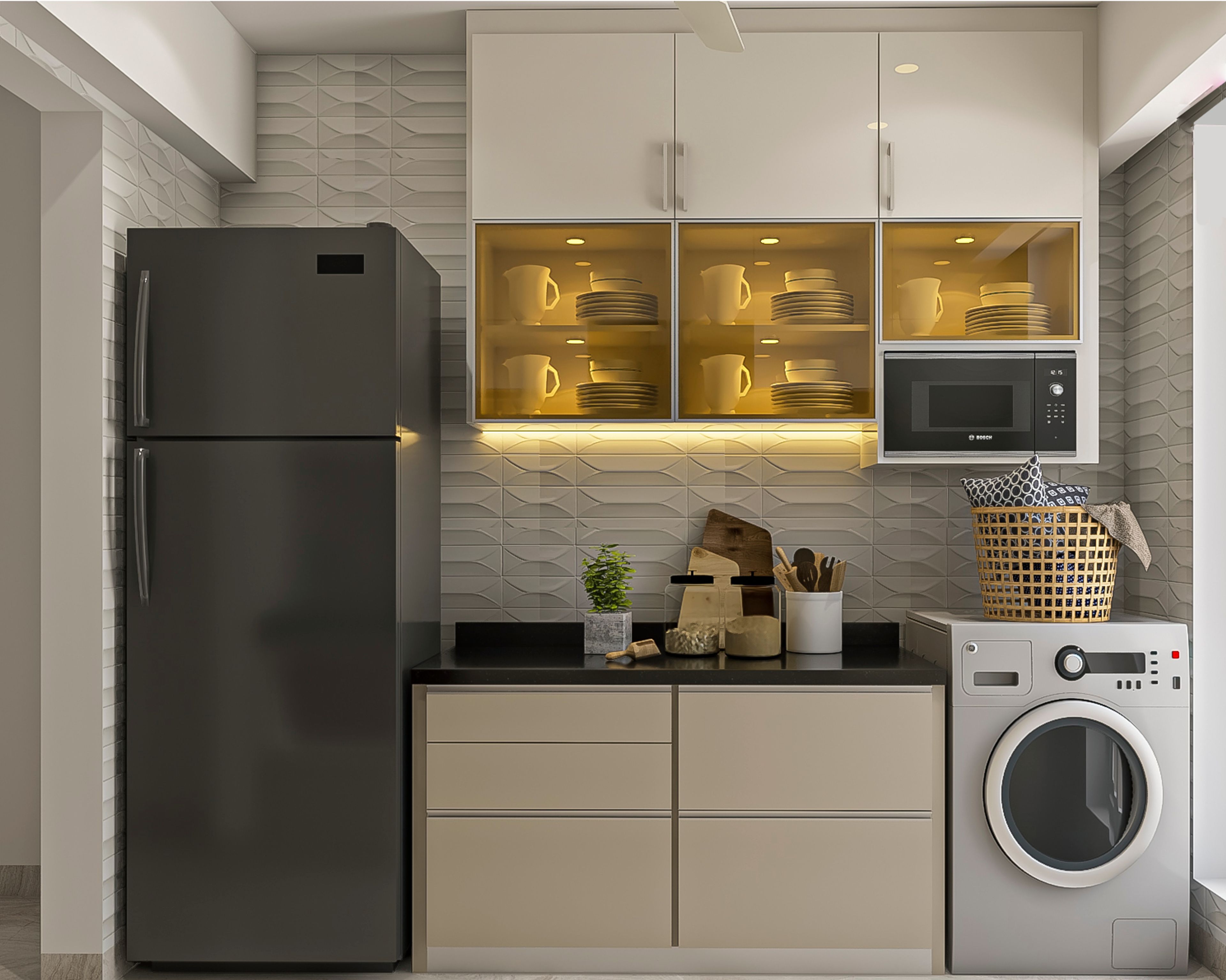 You can estimate the cost of Modern Modular Parallel Kitchen Design In Beige easily using the Livspace Modular Kitchen Cost Calculator. Enter your kitchen size, materials, and finish preferences to receive a personalized price estimate instantly.