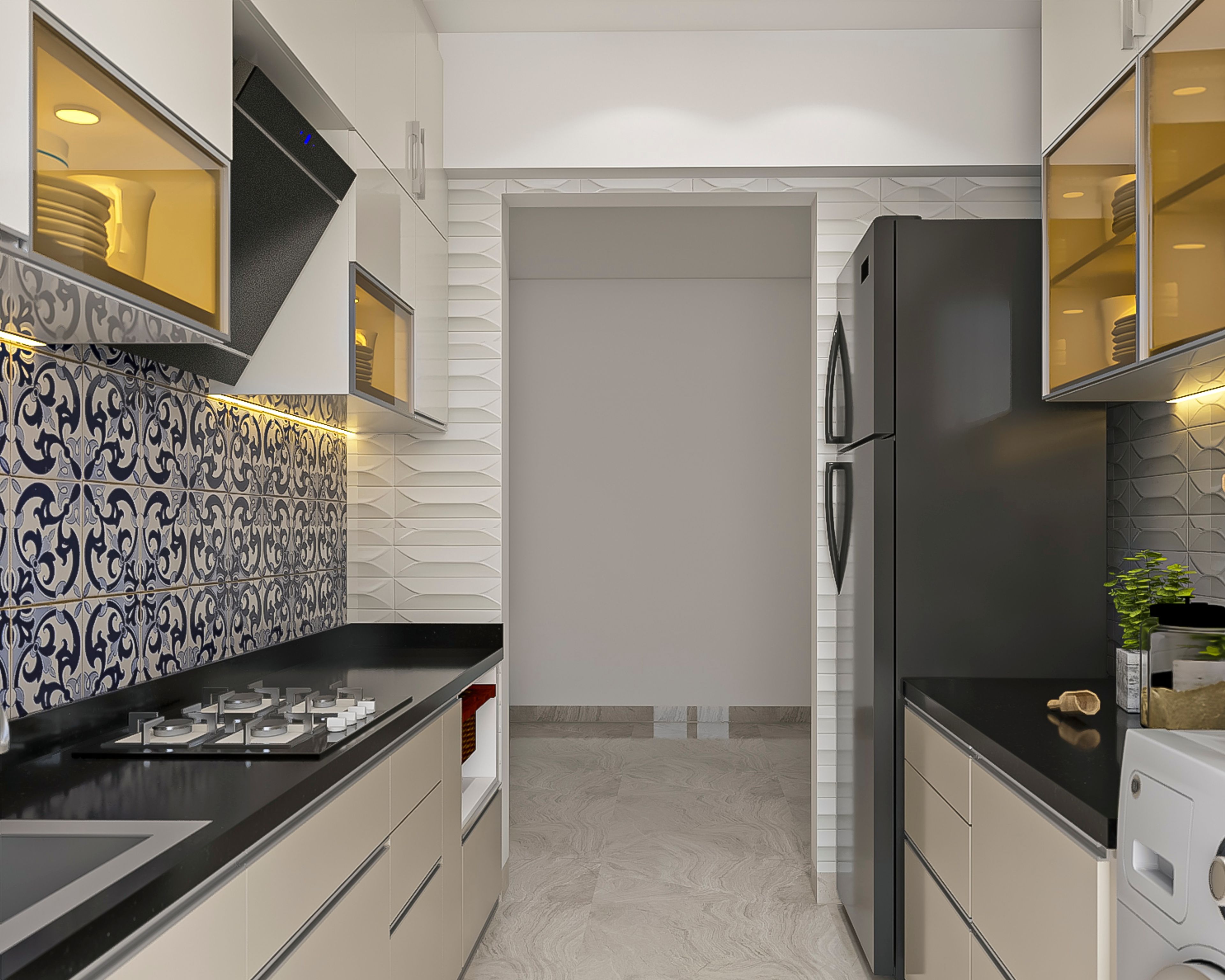 The cost of a modular kitchen in India starts from ₹2 Lakh* in 2025, depending on the materials, finishes, and storage features used. Kitchens are available for all budgets with EMIs as low as ₹3,300/month. Premium options like PU or acrylic finishes, designer patterned backsplashes, and soft-close pull-out units can increase the total cost. You can use the Livspace Kitchen Cost Calculator for an exact estimate.