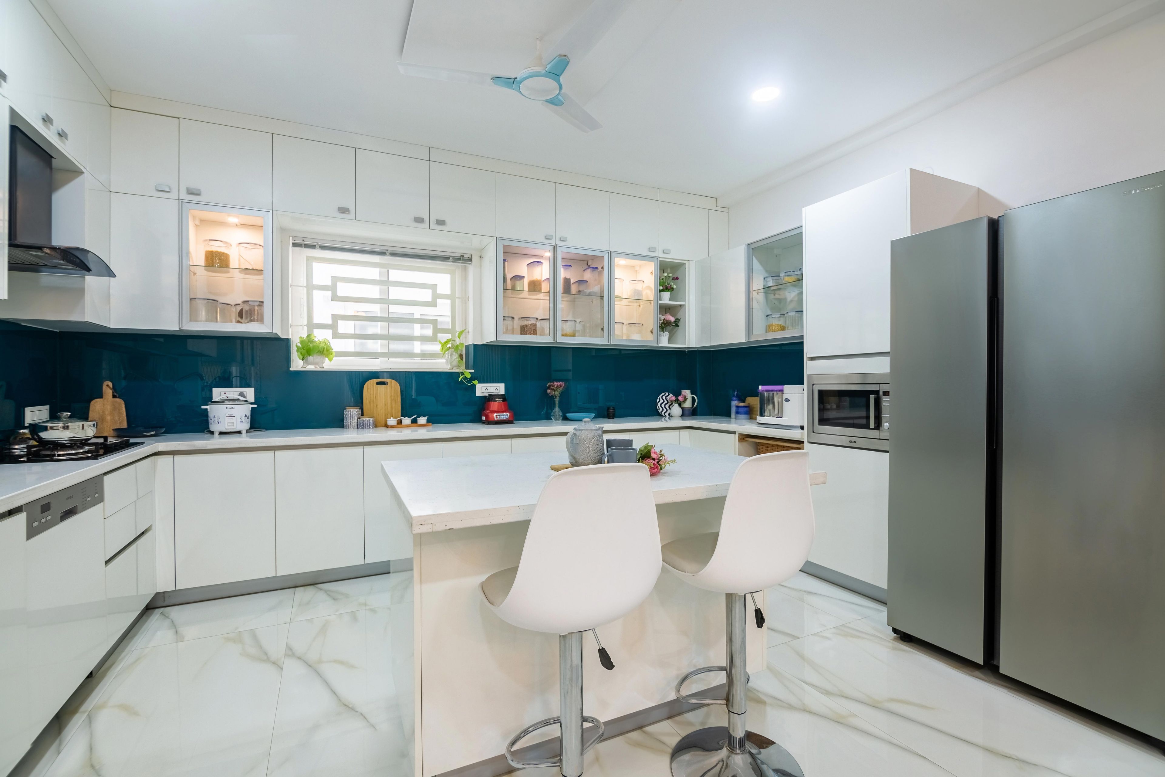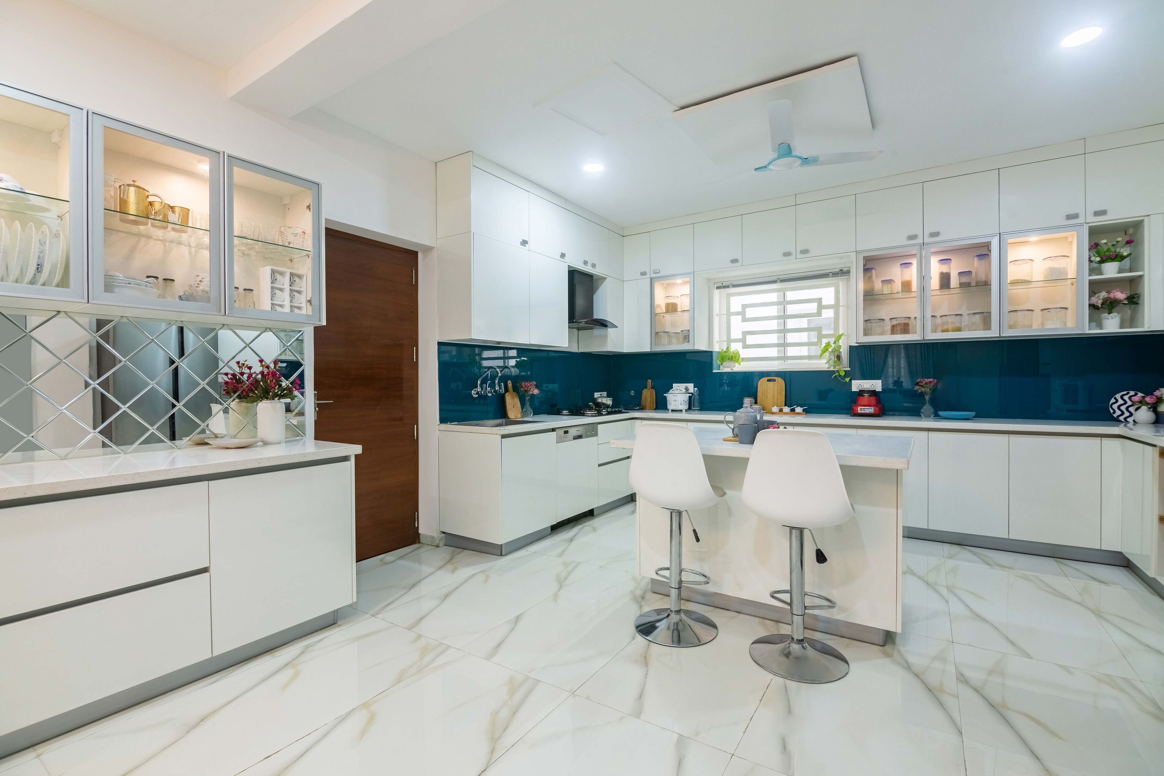 1. High-end backsplash and a light colour palette enhance the beauty of the room