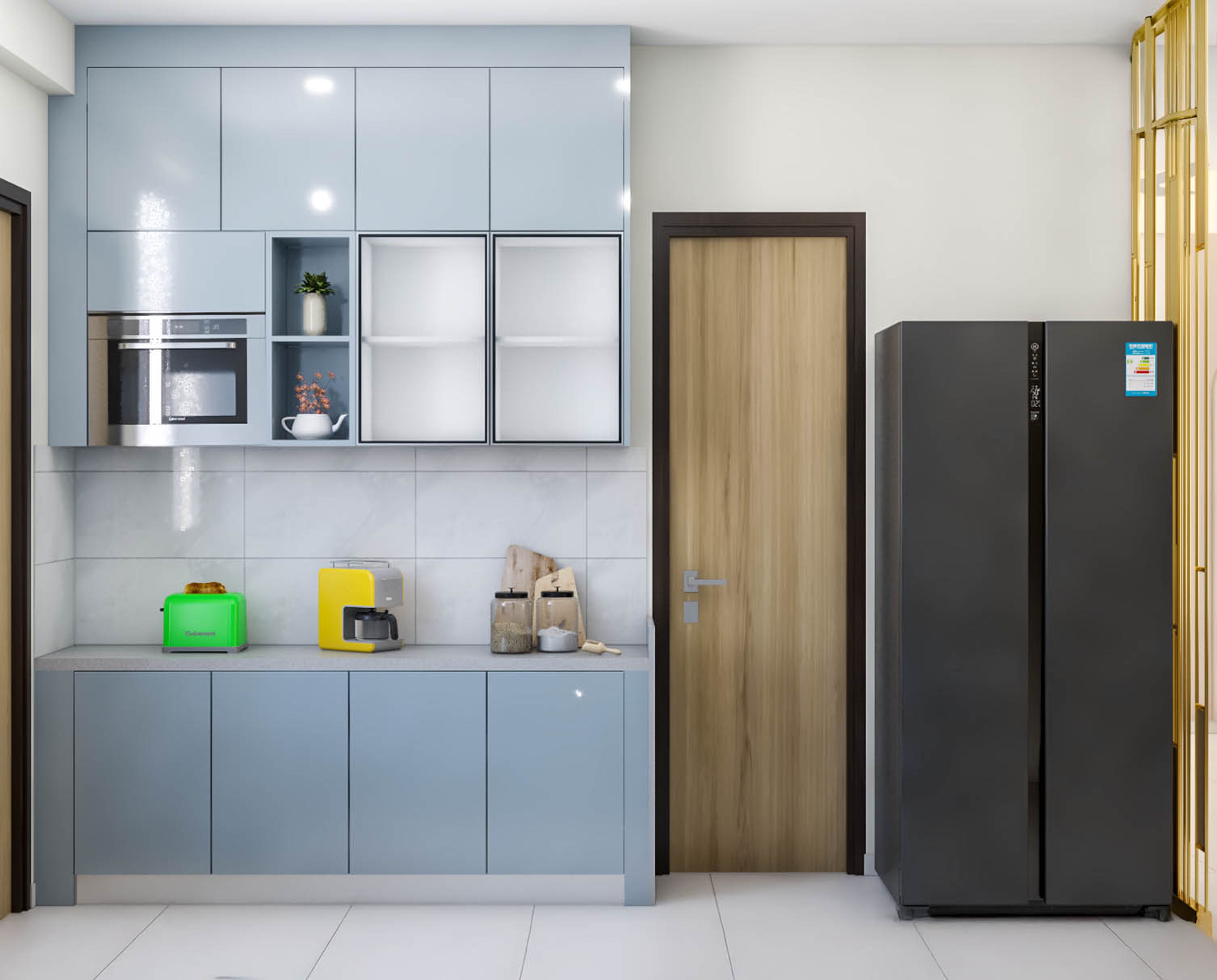- A built-in wine rack and tray dividers keep servingware accessible yet neatly concealed, ensuring a practical workflow from prep to cleanup.