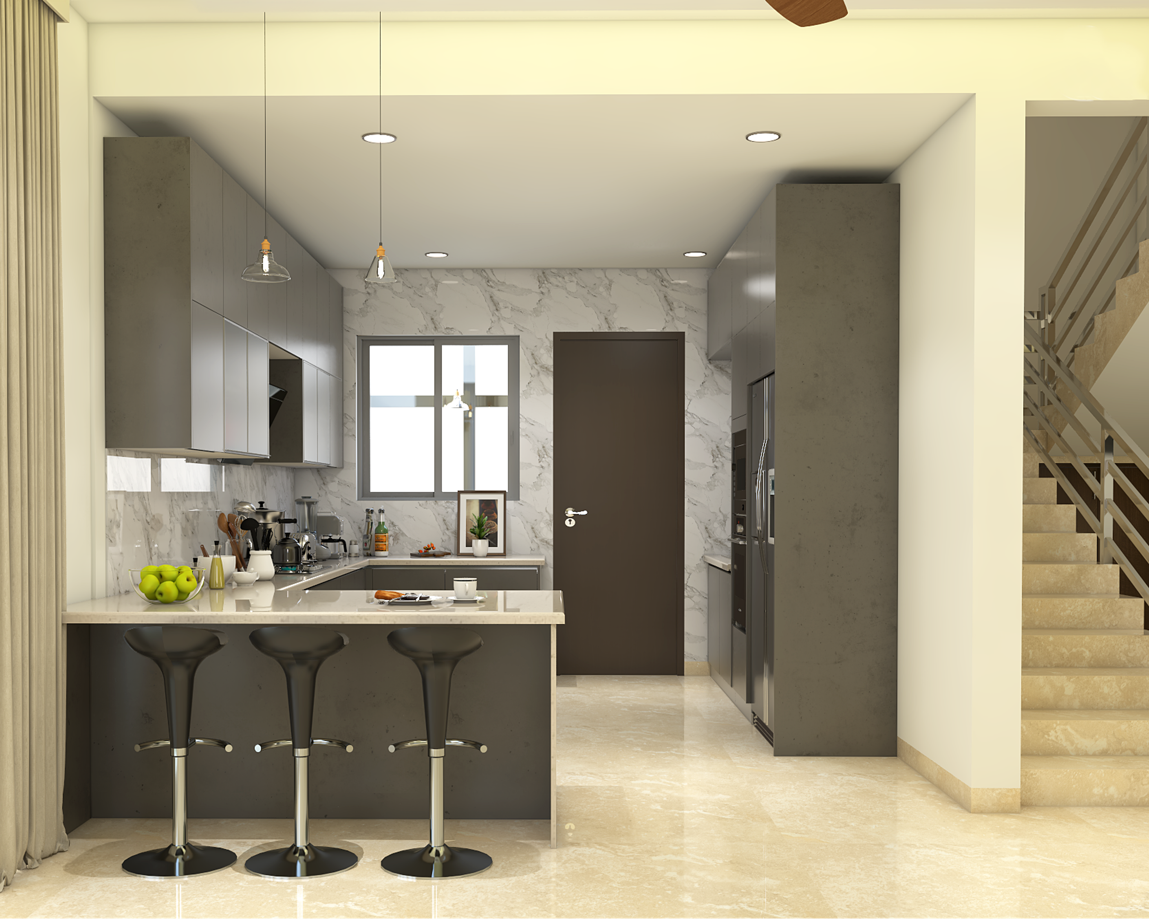 Modern U-Shaped Modular Kitchen Design