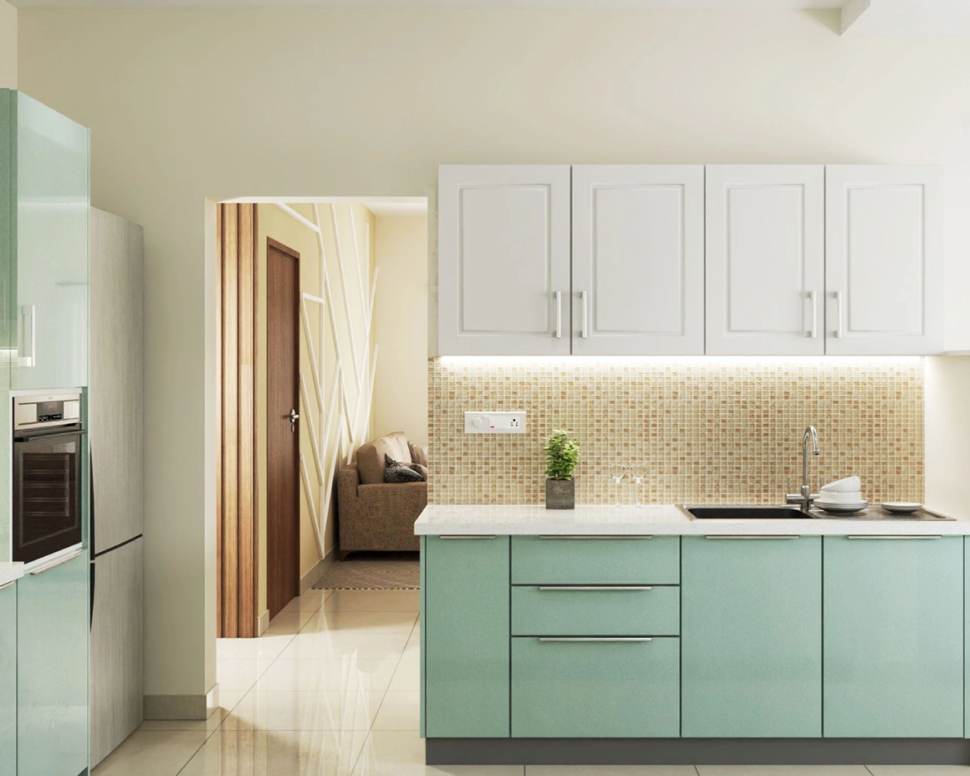 Home/.../Kitchen Designs/Pastel Green L-Shaped India Kitchen Design