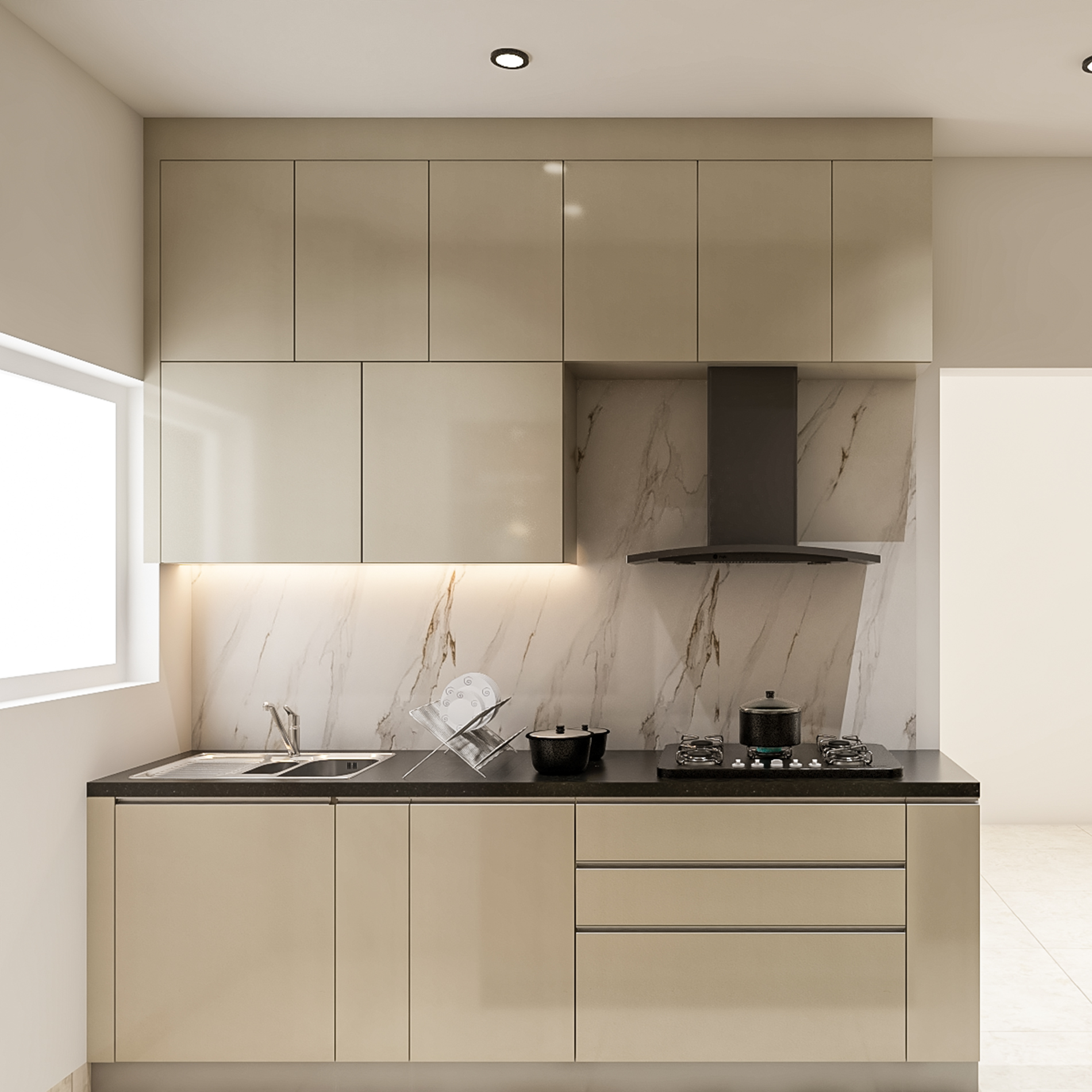 Open kitchen designs look best when they are minimalistic. If you have a compact kitchen, opt for clean linear finishes for a fuss-free aesthetic. Choose brighter colours and smooth laminates that blend well with the rest of your kitchen and the light. When deciding countertops and appliances, go for non-bulky finishes with thinner builds to give your kitchen a sleek look.