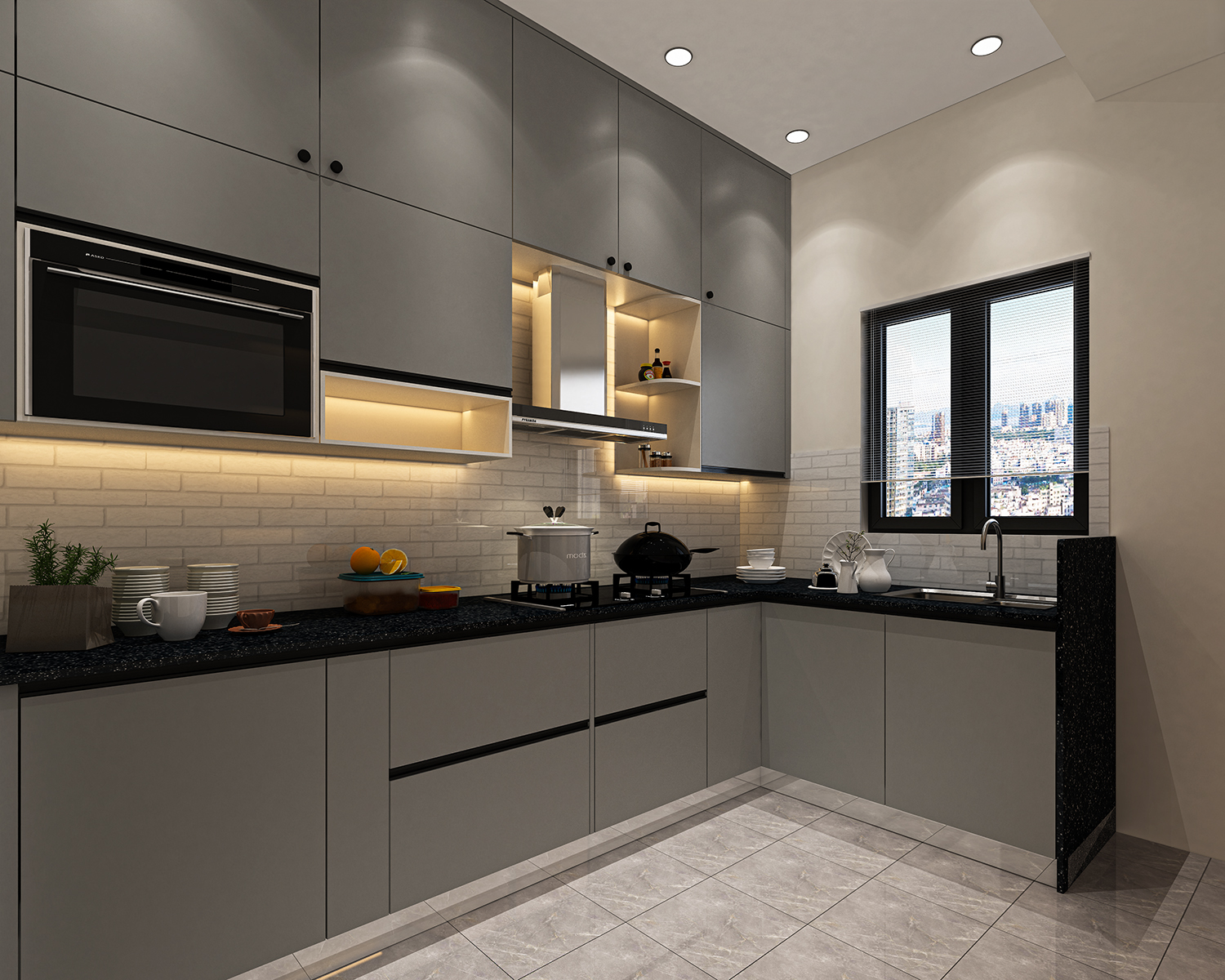 L-Shaped Modular Kitchen Raipur You can never go wrong with an L-shaped modular kitchen in Raipur. If you are looking at a kitchen design that is cost-effective, gives you ample freedom to move about in a kitchen, with multiple entrance points, an L-shaped kitchen design is the way to go.