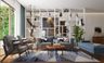 This luxuriously cozy living room boasts comfortable Elise  sofas, cute pillows and splendid lighting.   The low-lying Sloman coffee table adds a modern edge, while the jacquard wallpaper makes this room an absolute winner.
