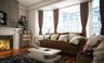 Elegant detailing on the Byron tufted three seater sofa is offset by the clean contemporary form of the floor lamp. Simple accompaniments like the patterned rug and coffee table add character to the look. A  decorative floral accent gracefully frames the wall above, adding dramatic flair to this look.