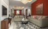 This modern airy living room has been designed with perfect elements to host guests, catch up on prime time television after work or for some peaceful weekend reading.   An exemplar of transitional style, the open-layout room features  a pair of Hayden two-seater sofas, coupled with twin Hayden ottomans, perfect for additional seating or leg rest. The chevron-patterned nested tables are versatile to  accommodate food trays or accent pieces as needed, while the TV unit quite surely steals the show.   . .