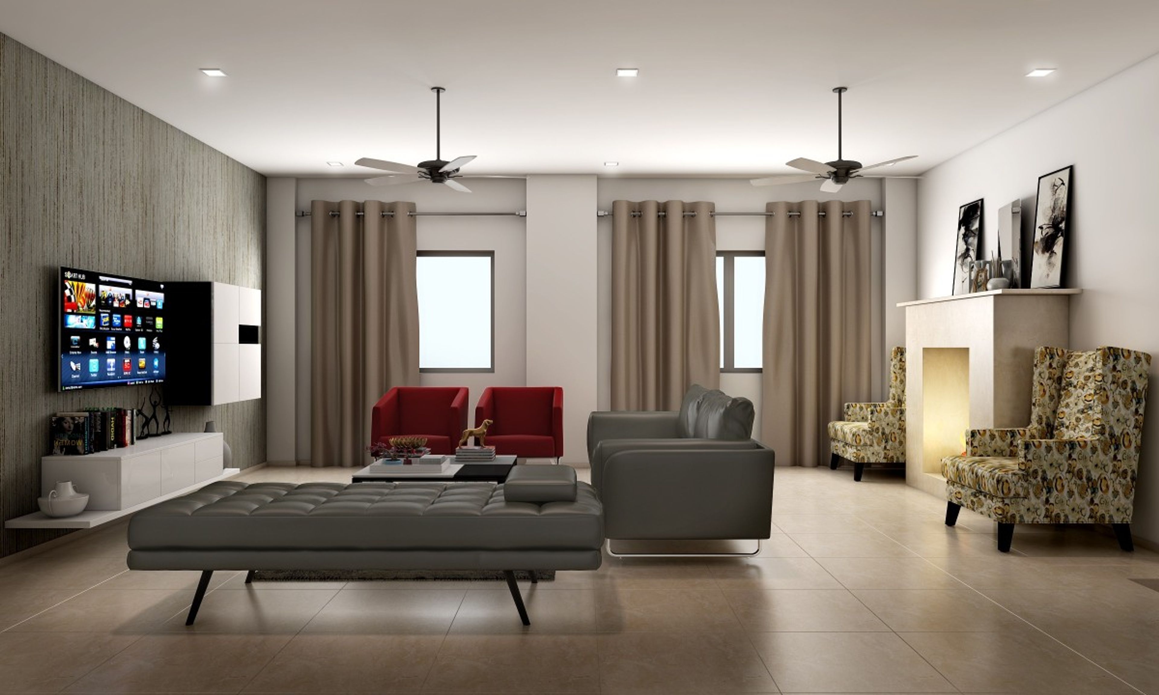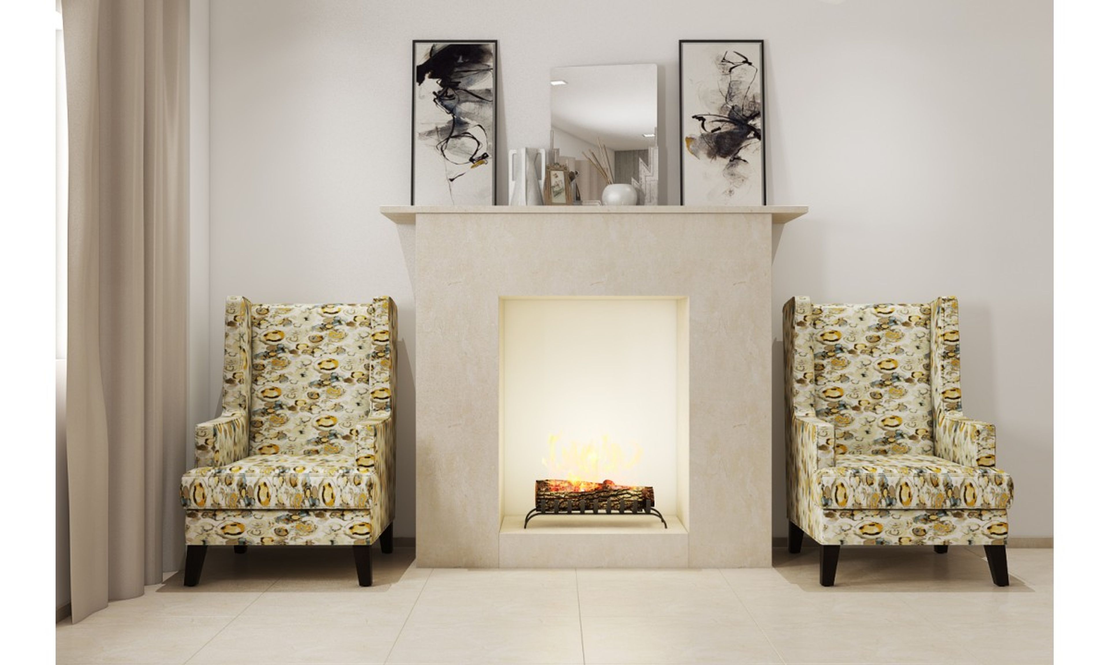 This modern living room subtly exudes of opulence and style, thanks to the contemporary pieces and aesthetic accents. The vibrantly upholstered Vivien accent chairs break the monotony, while the pop coloured chairs add drama to this otherwise understated room.
