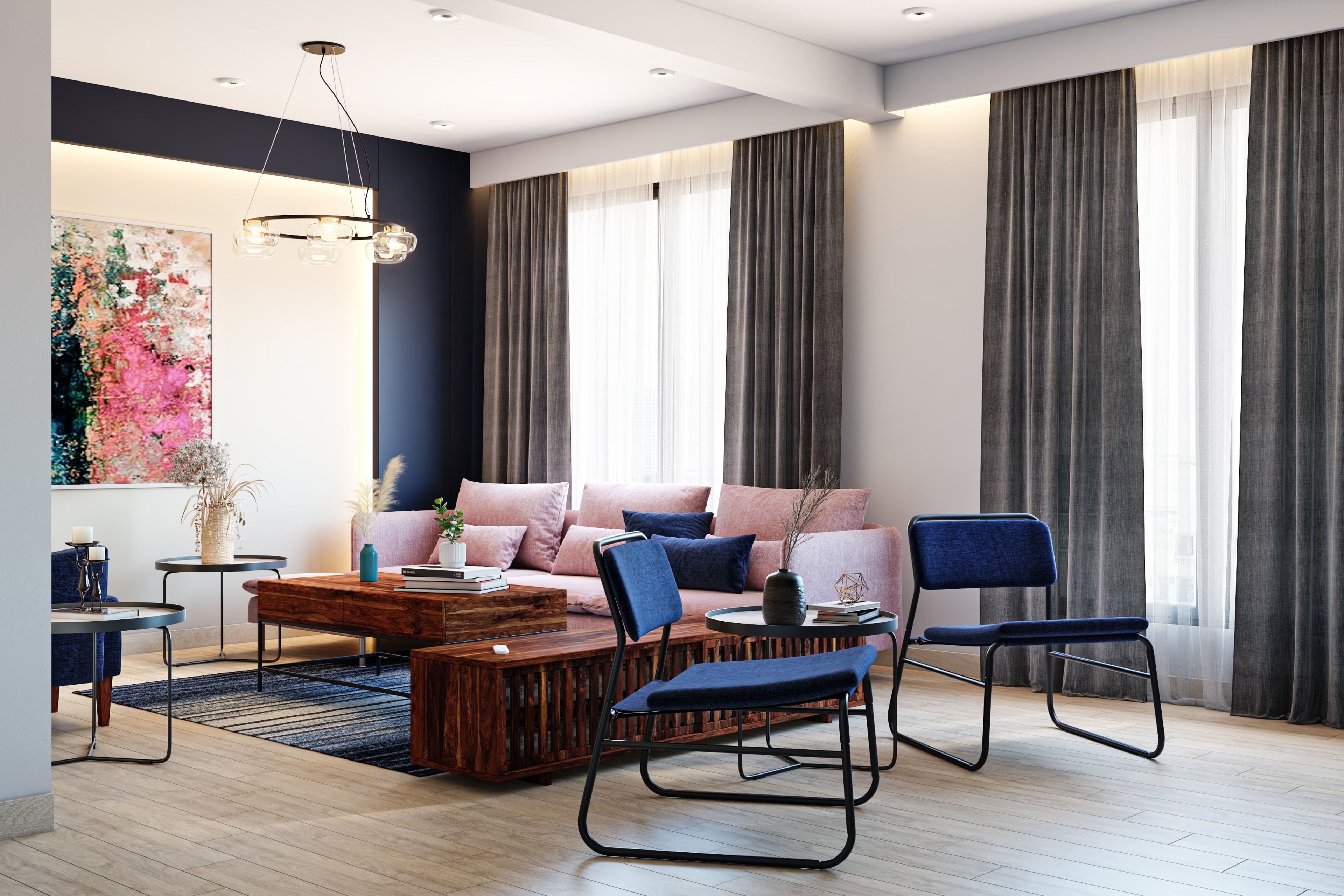 Livspace offers up to 10 years of warranty on Modern Living Room Design With A 3-Seater Pink Sofa, covering material quality, hardware, and installation workmanship. Warranty terms may vary based on chosen finishes and components.
