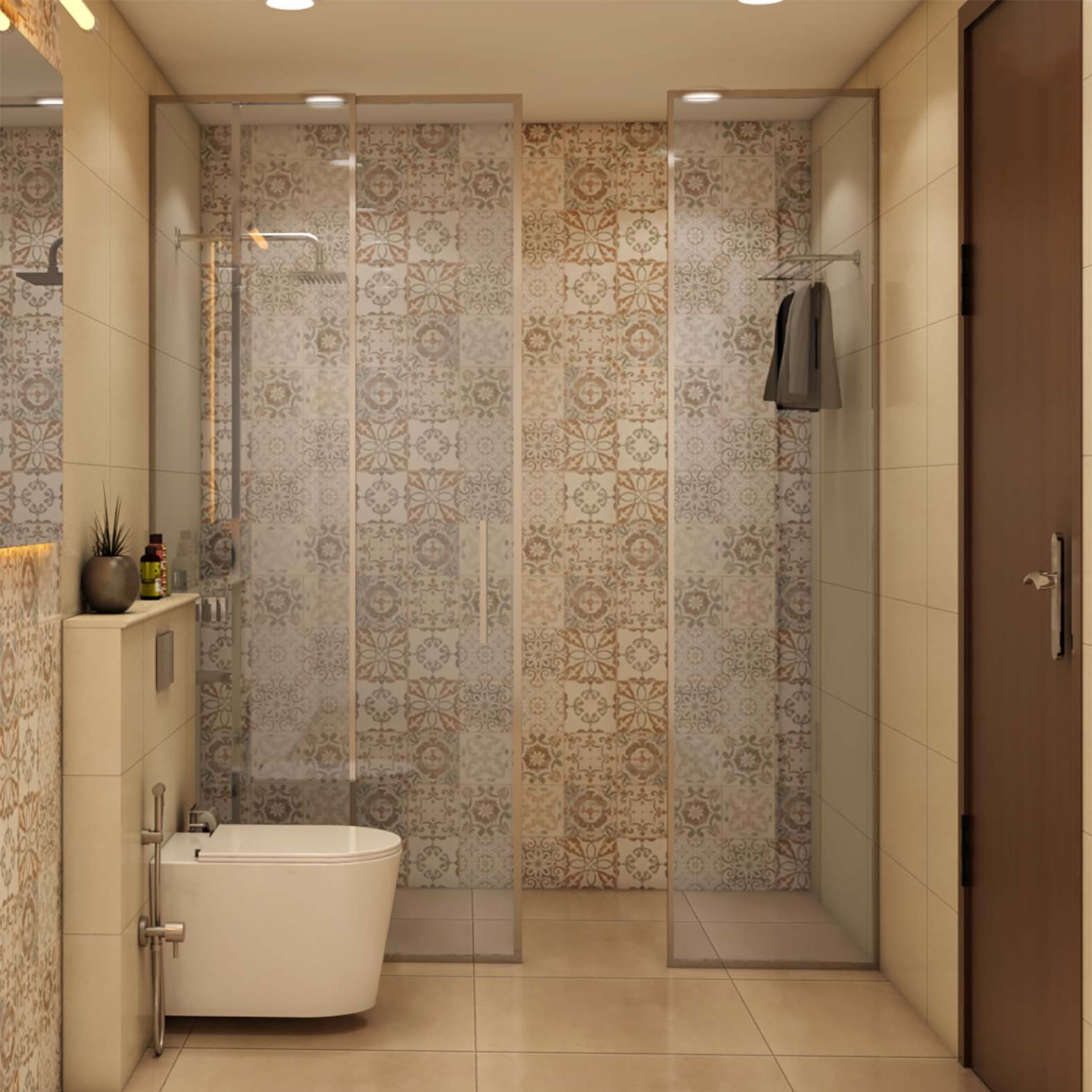 Contemporary Beige Bathroom Tile Design With Moroccan TIles