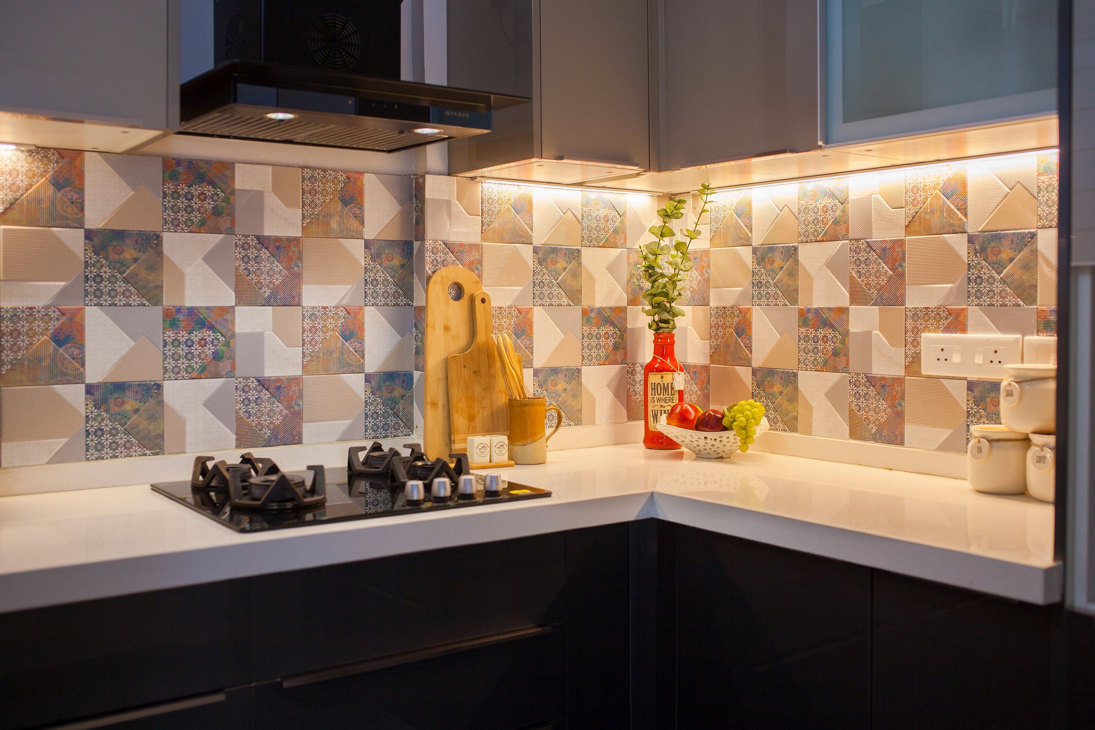 Modern Kitchen Tile Design With A Patterned Backsplash