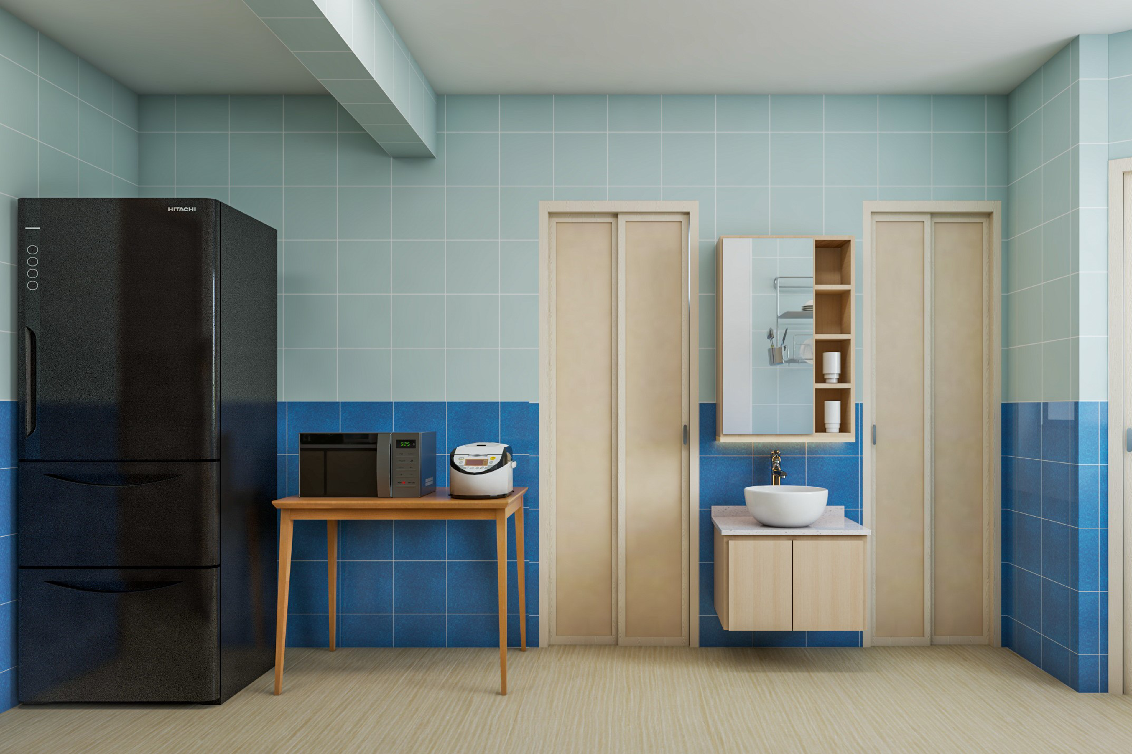 Home/.../Tile Designs/Pastel Blue Kitchen Tile Design With A Modern Wall Dado
