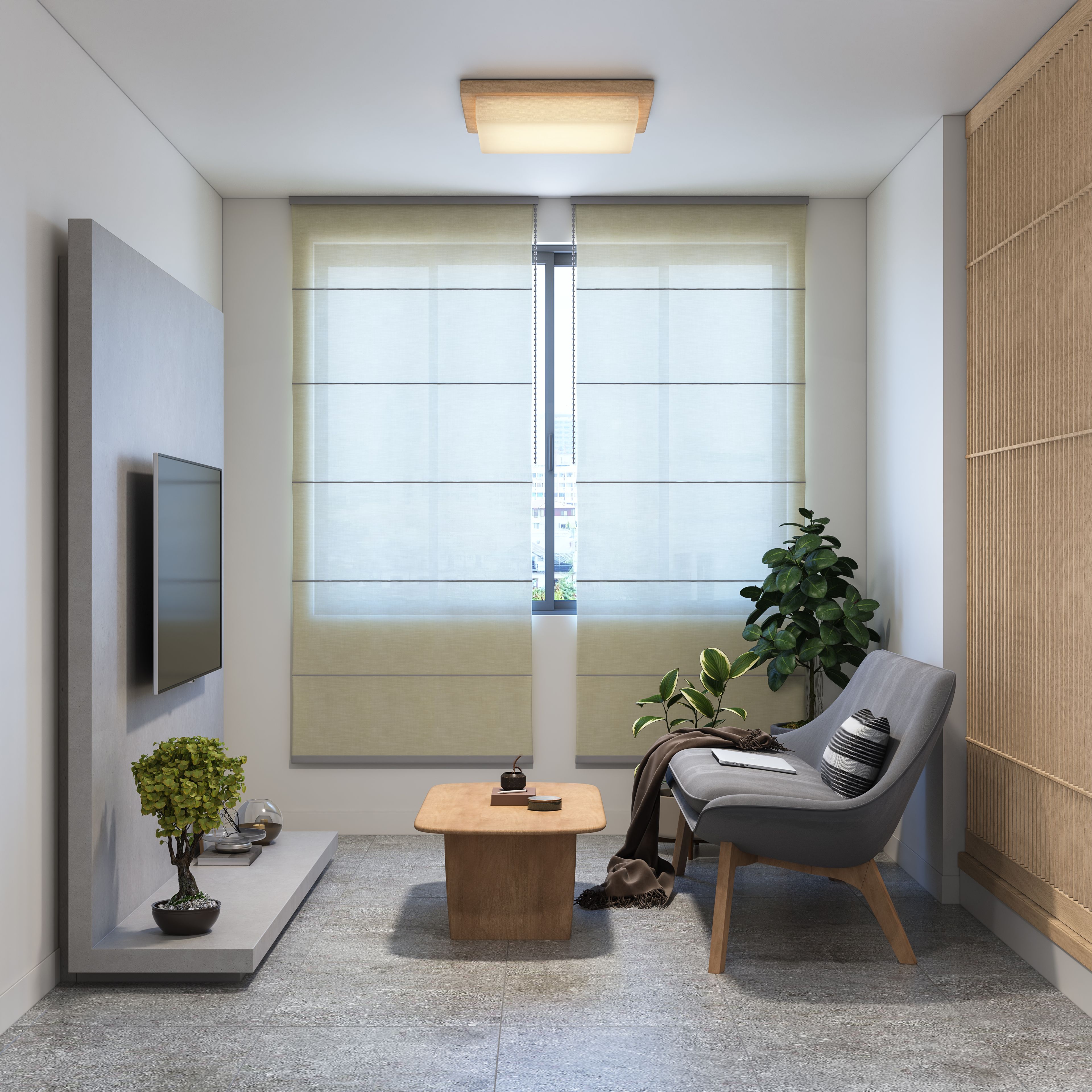 Rustic Living Room Tile Design With Grey Porcelain Tiles