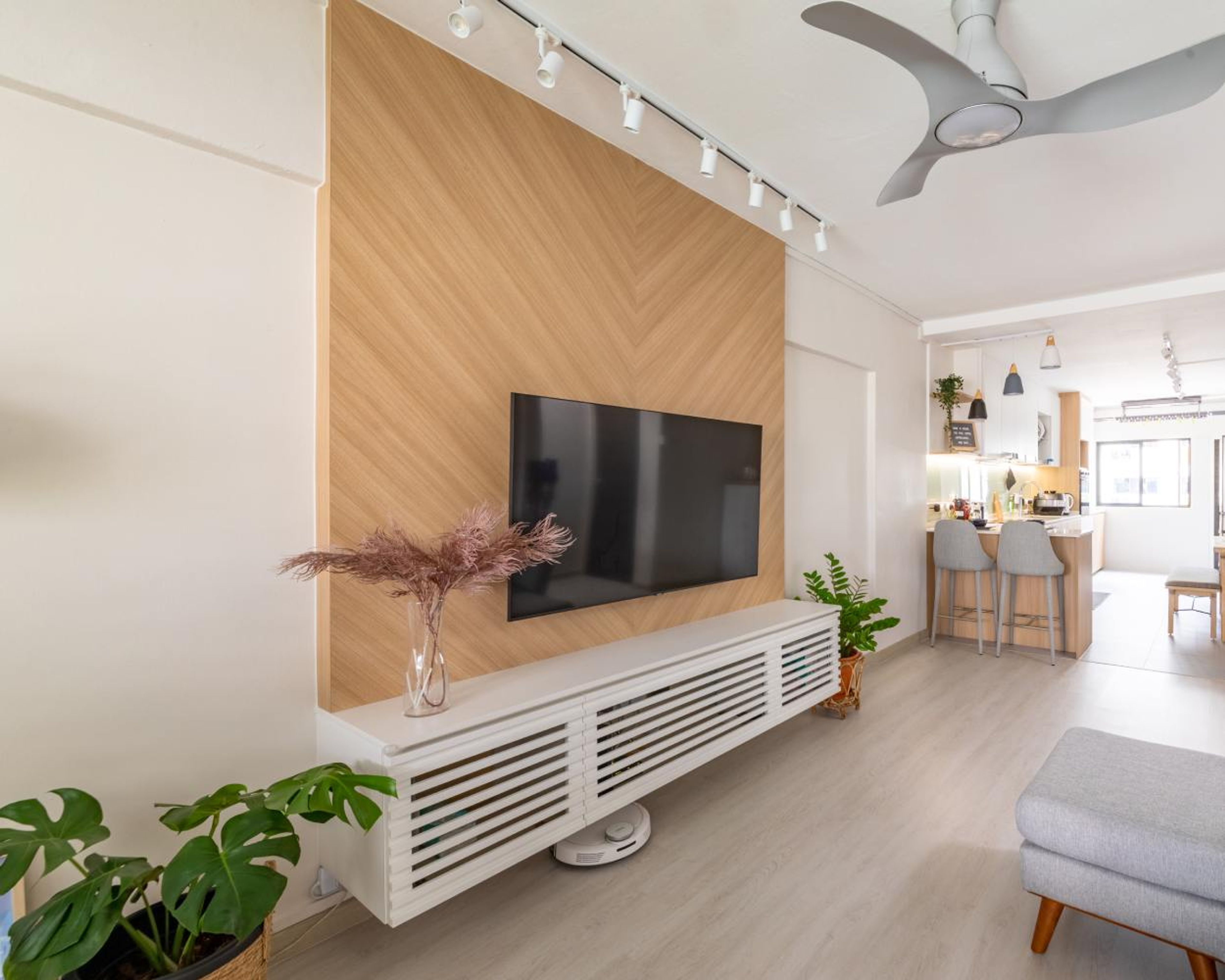 Yes, Livspace provides fully customisable TV unit designs tailored to your wall dimensions, décor style, and storage preferences. You can choose the unit layout (wall-mounted, floor-mounted, or floating), finishes, lighting, and shelving configuration to suit your living room perfectly.