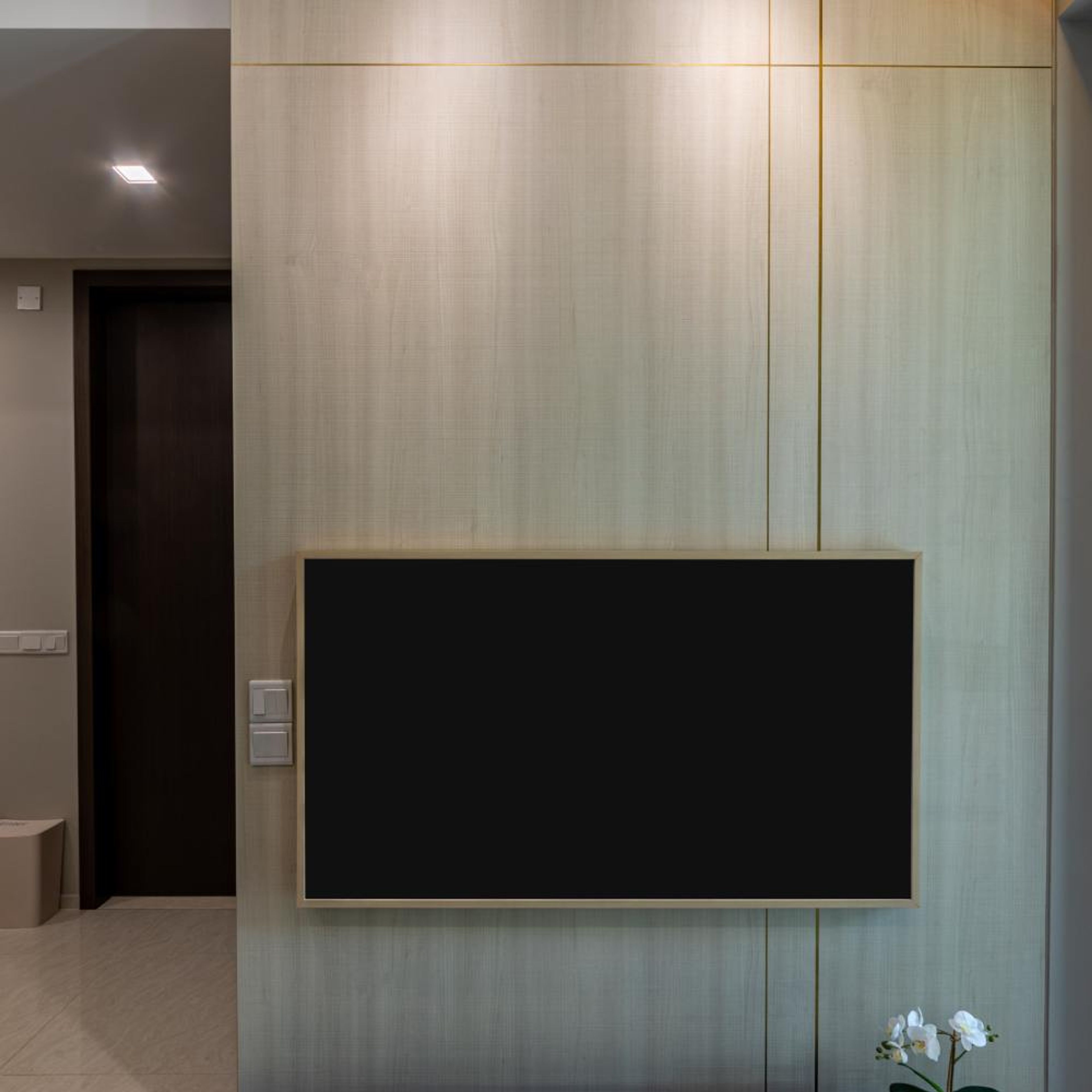LED strip lighting, cove lights, and backlit wall panels are ideal. They highlight textures, reduce eye strain, and enhance ambience during viewing. Smart RGB options can be integrated for mood-based lighting.