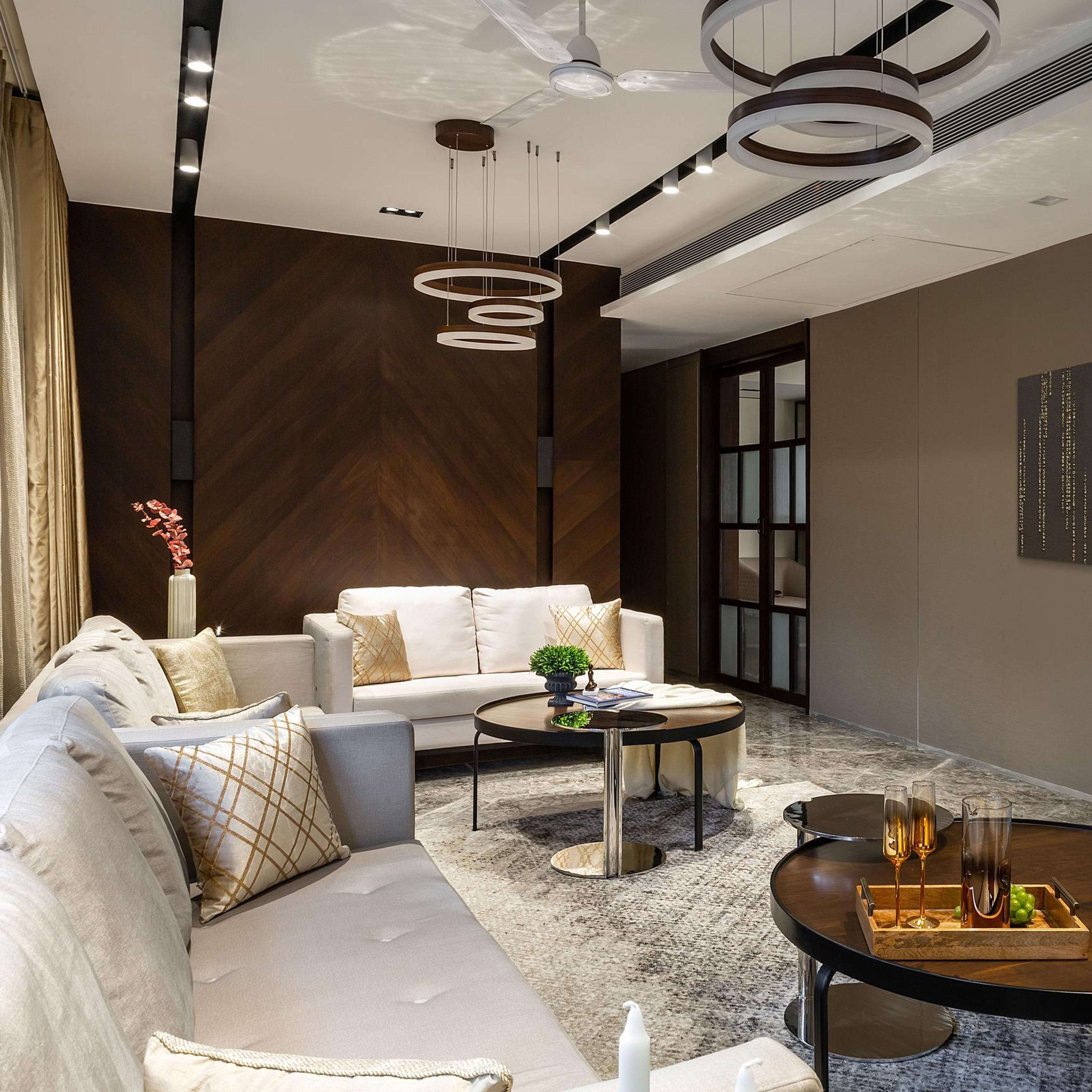 Livspace offers up to 10 years of warranty on Contemporary Living Room Wall Design With Wooden Panelling, covering material quality, hardware durability, and installation craftsmanship. Warranty coverage may vary based on selected finishes, materials, and lighting integrations — ensuring long-term reliability and peace of mind.