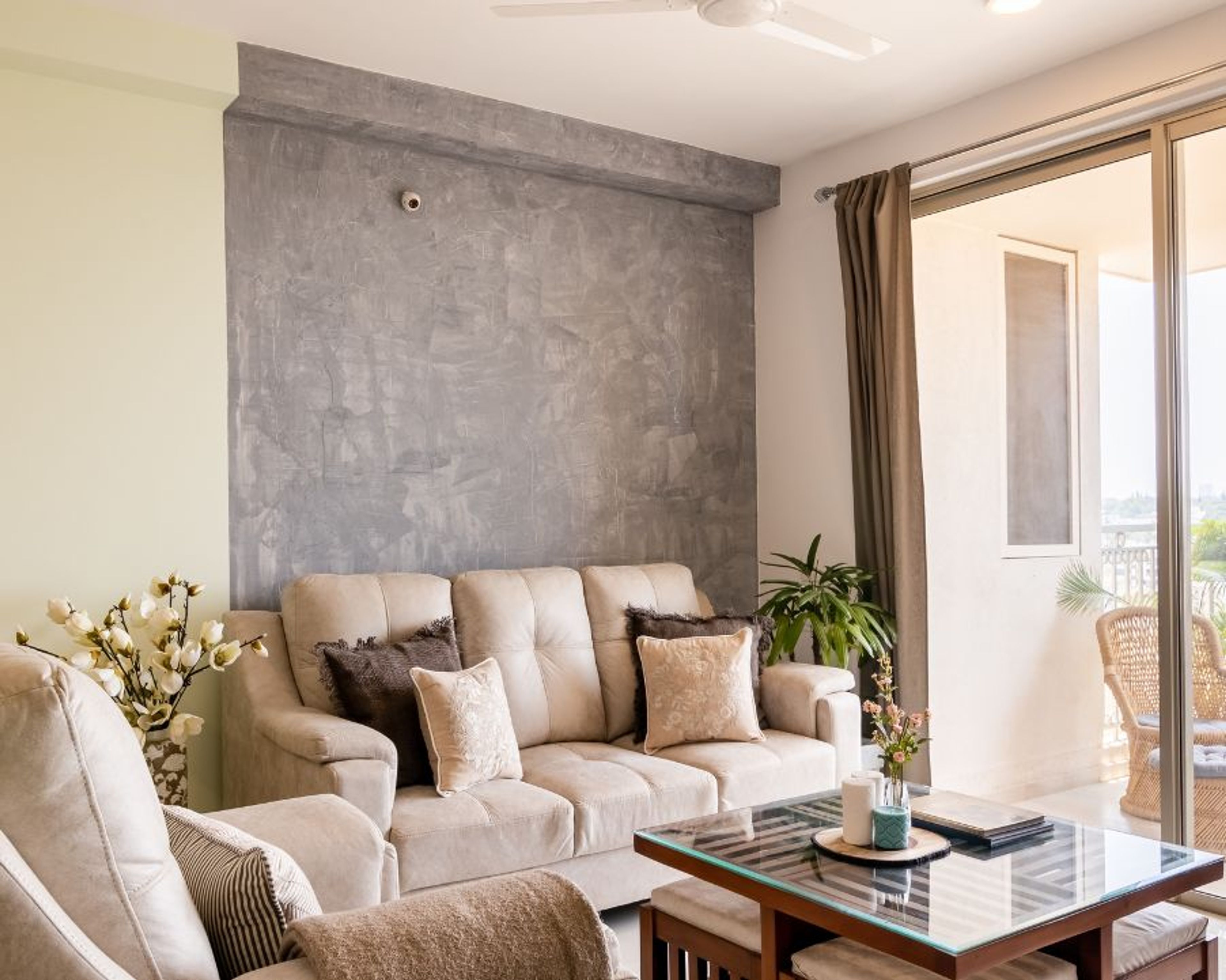 • Cream sofa goes well with the neutral colour palette of the room