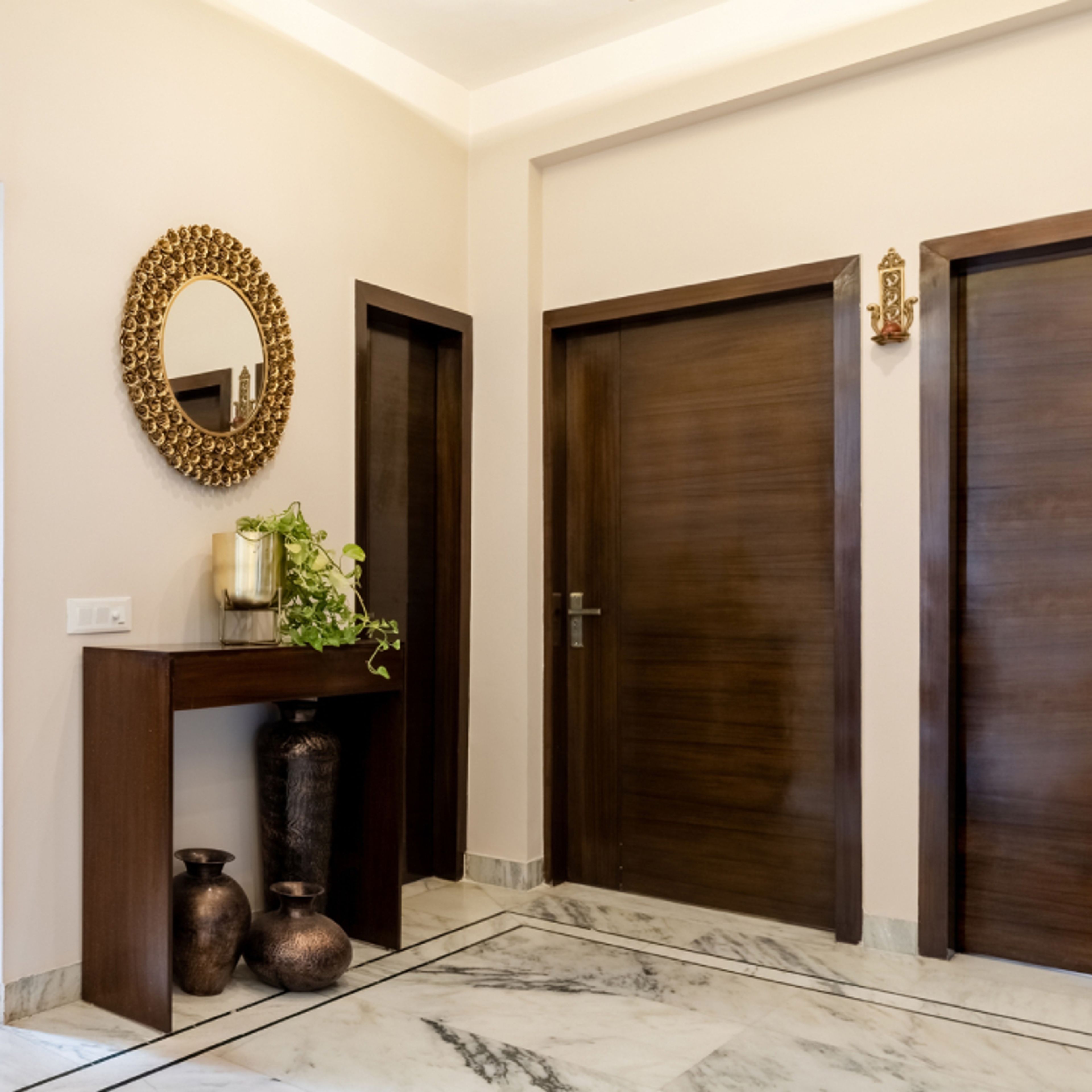 Livspace offers up to 10 years of warranty on Modern Beige Wall Paint Design With A Framed Mirror, covering material quality, hardware durability, and installation craftsmanship. Warranty coverage may vary depending on your selected finishes and fittings, ensuring long-term reliability and peace of mind.
