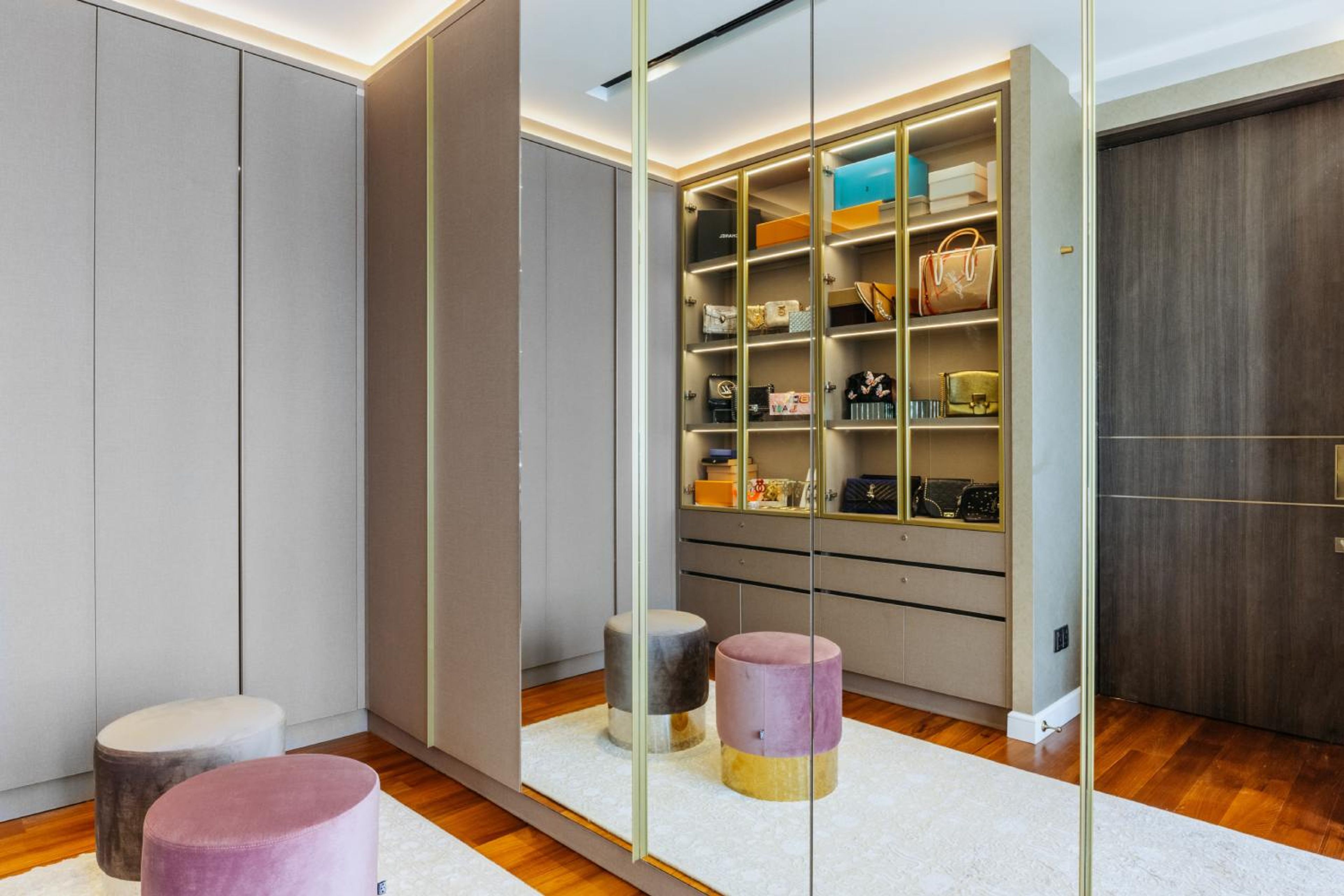 Use modular inserts such as pull-out drawers, adjustable shelves, and hanger rods. Add internal lighting and loft cabinets to maximize vertical storage.