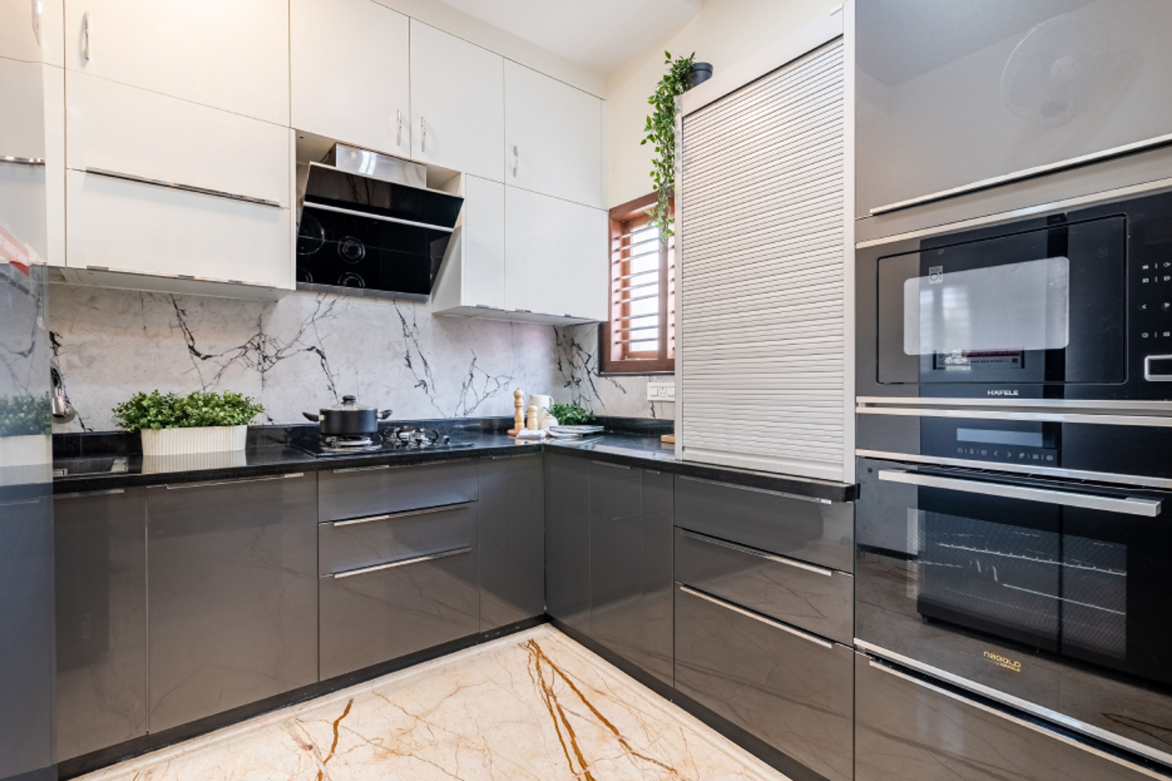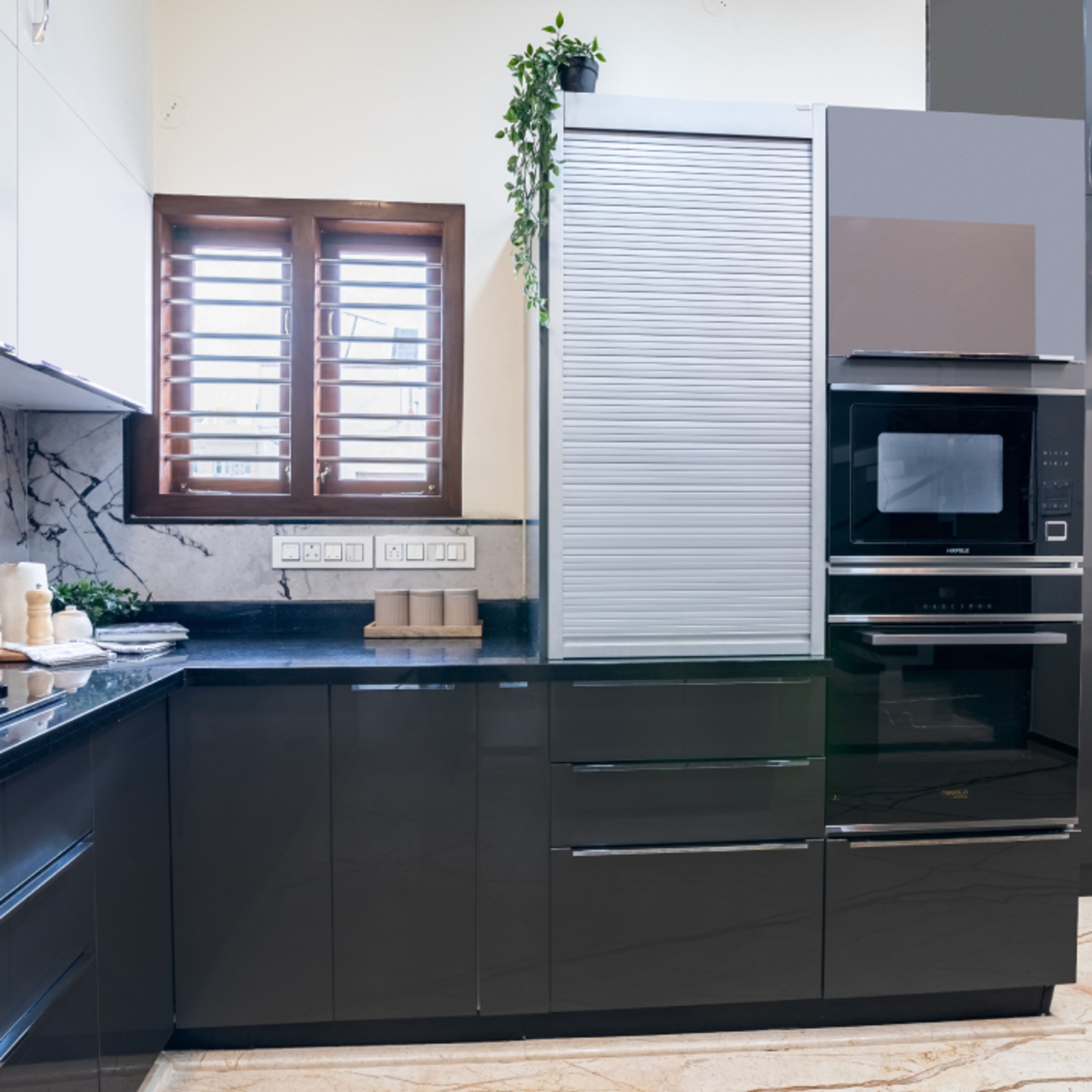 • Glass shutters ensure ample natural lighting for the kitchen