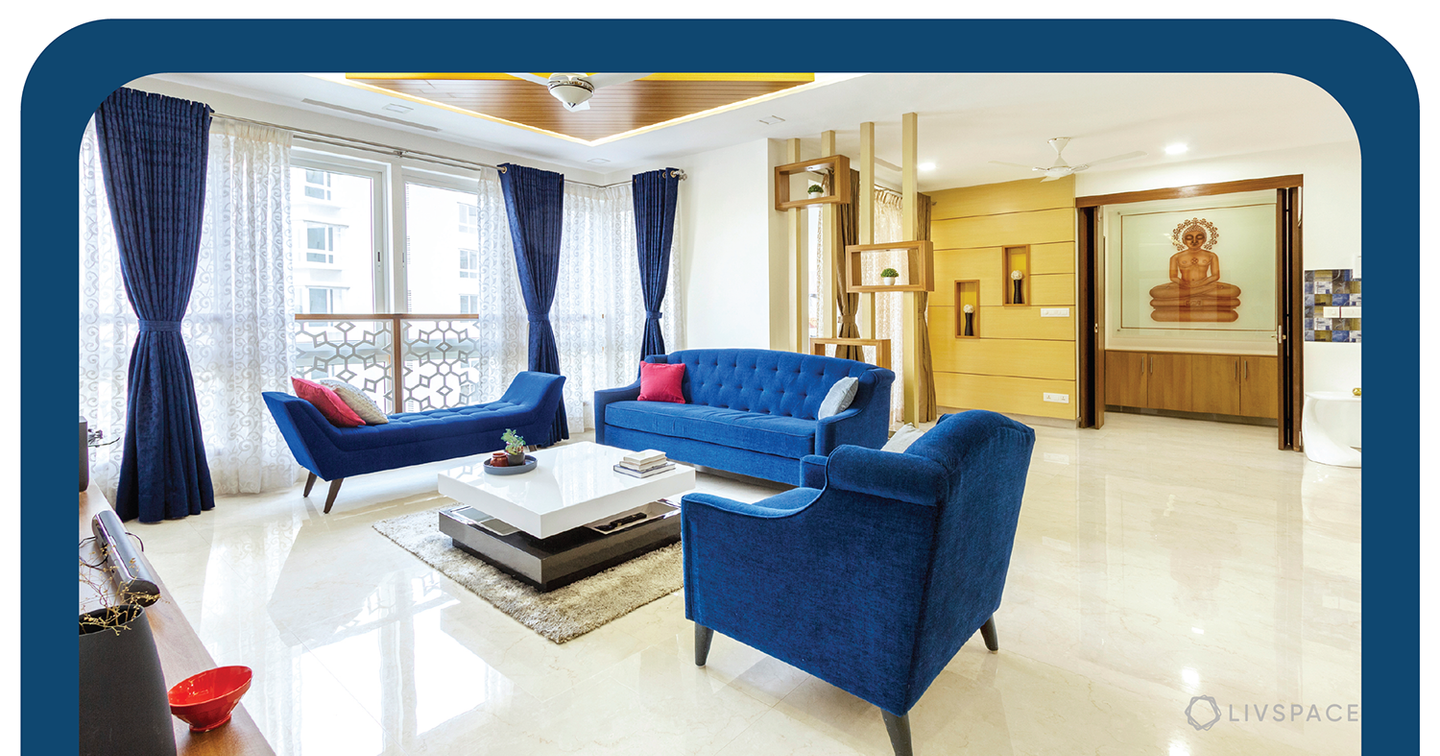 Want something completely out of the box for your living room? Choose a fluid-shaped plus-minus POP design! In fact, we gave the above home a trendy patch of POP that’s painted in a glossy brown. Notice how it has a backlit feature too! Since it’s towards the centre wall of the living room, you can pair it with all sorts of wall accessories from an artistic portrait to a metallic accent bike piece like this family did.